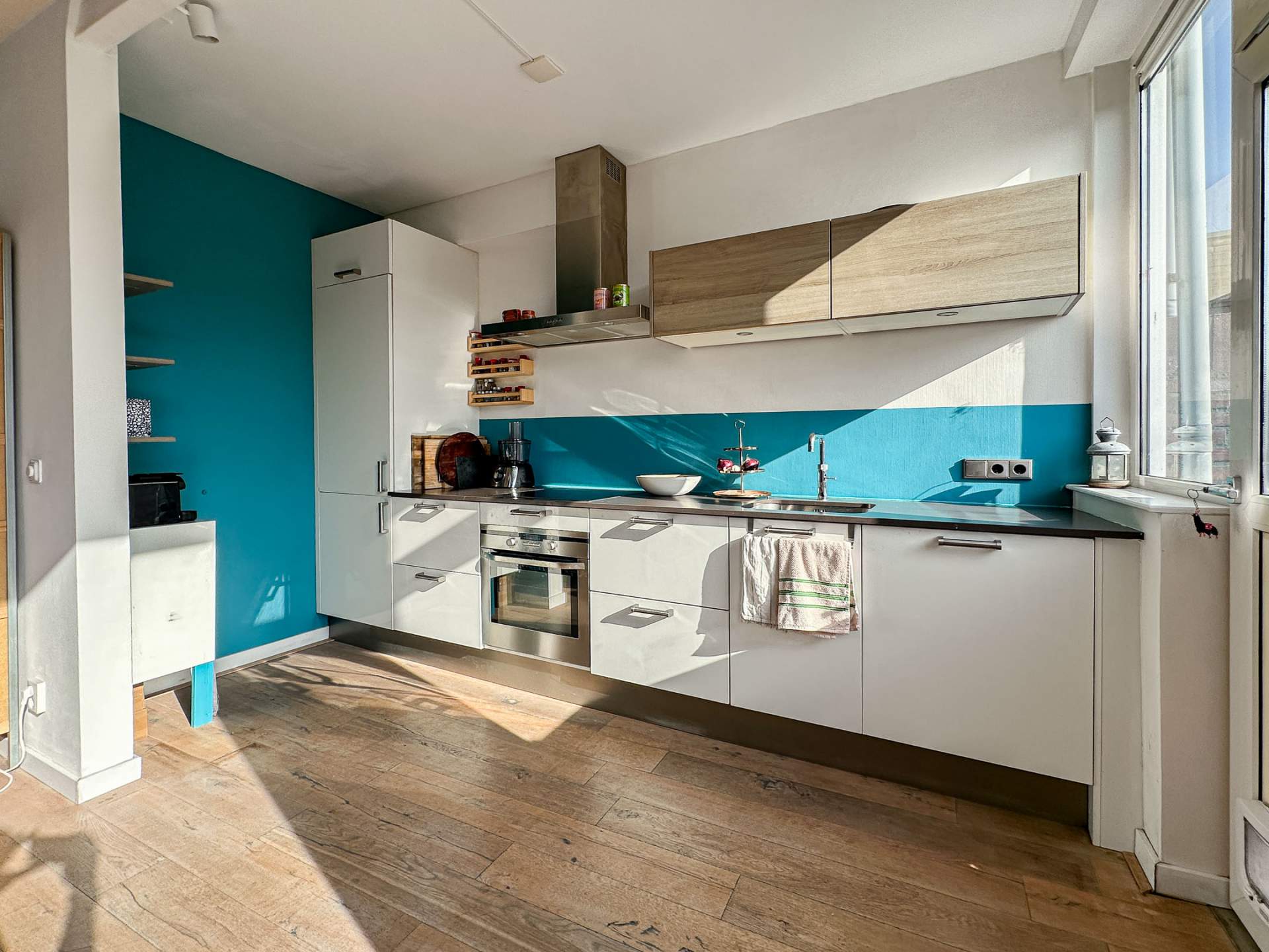 De ruime open keuken vormt het hart van de verdieping en is volledig uitgerust met alle gewenste inbouwapparatuur, waaronder een koelkast, vriezer, oven en vaatwasser. Ideaal voor wie houdt van koken en gezellig samenzijn.
