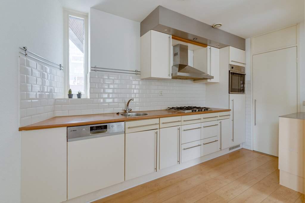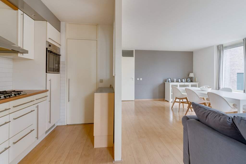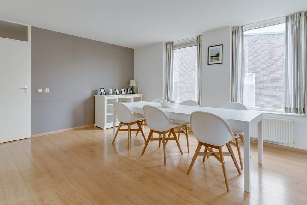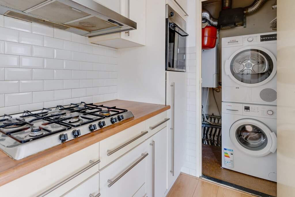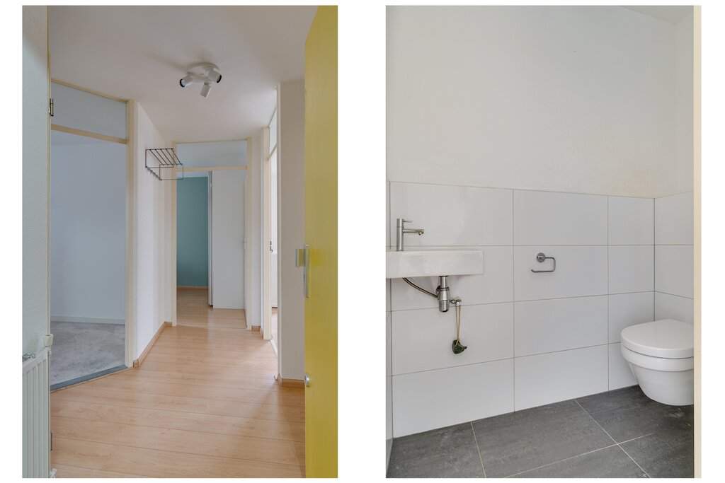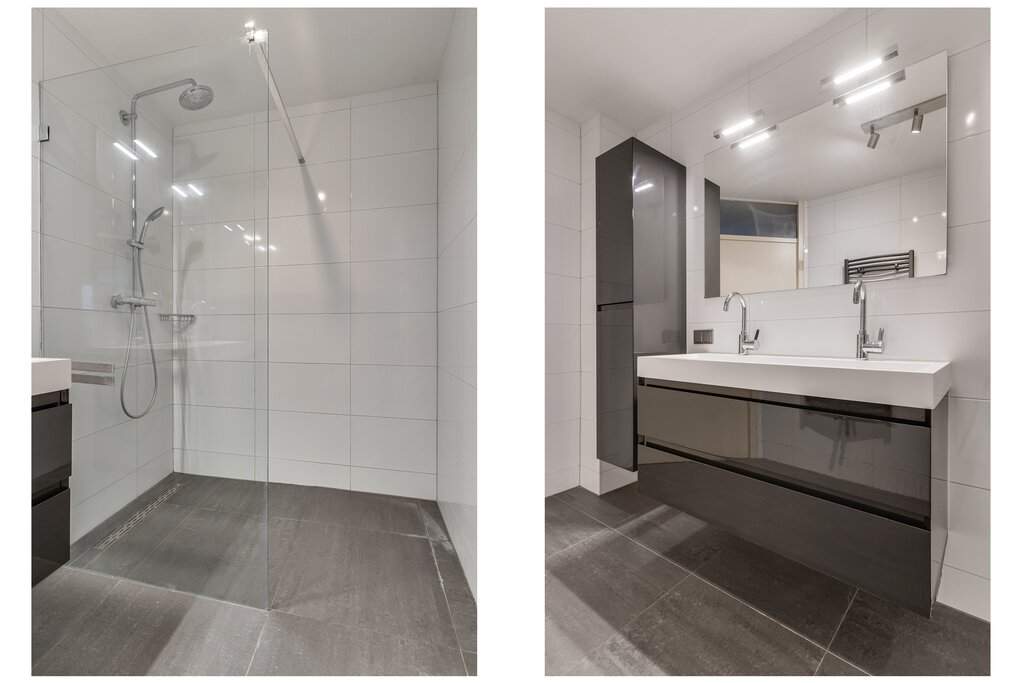 Tweede verdieping; Je komt binnen in de hal. Hier vind je meterkast en toegang tot het moderne aparte toilet. Vervolgen bereik je de lichte en ruime woonkamer in L-vorm. Er is een half open keuken met gasfornuis, vaatwasser, oven, afzuigkap en koelkast. Vanuit de keuken heb je toegang tot een kleine ruimte waar de wasmachine, droger en c.v.-opstelling staan. De ruime hoofdslaapkamer is voorzien van tweepersoonsbed en garderobekast. Er is ook een tweede slaapkamer, welke je bijvoorbeeld kunt gebruiken als logeerkamer of als werkkamer. Het is gelegen op het zuiden, dus je bent zeker voorzien van een zonnetje. De moderne badkamer is voorzien van inloopdouche en badkamermeubel met dubbele wasbak.