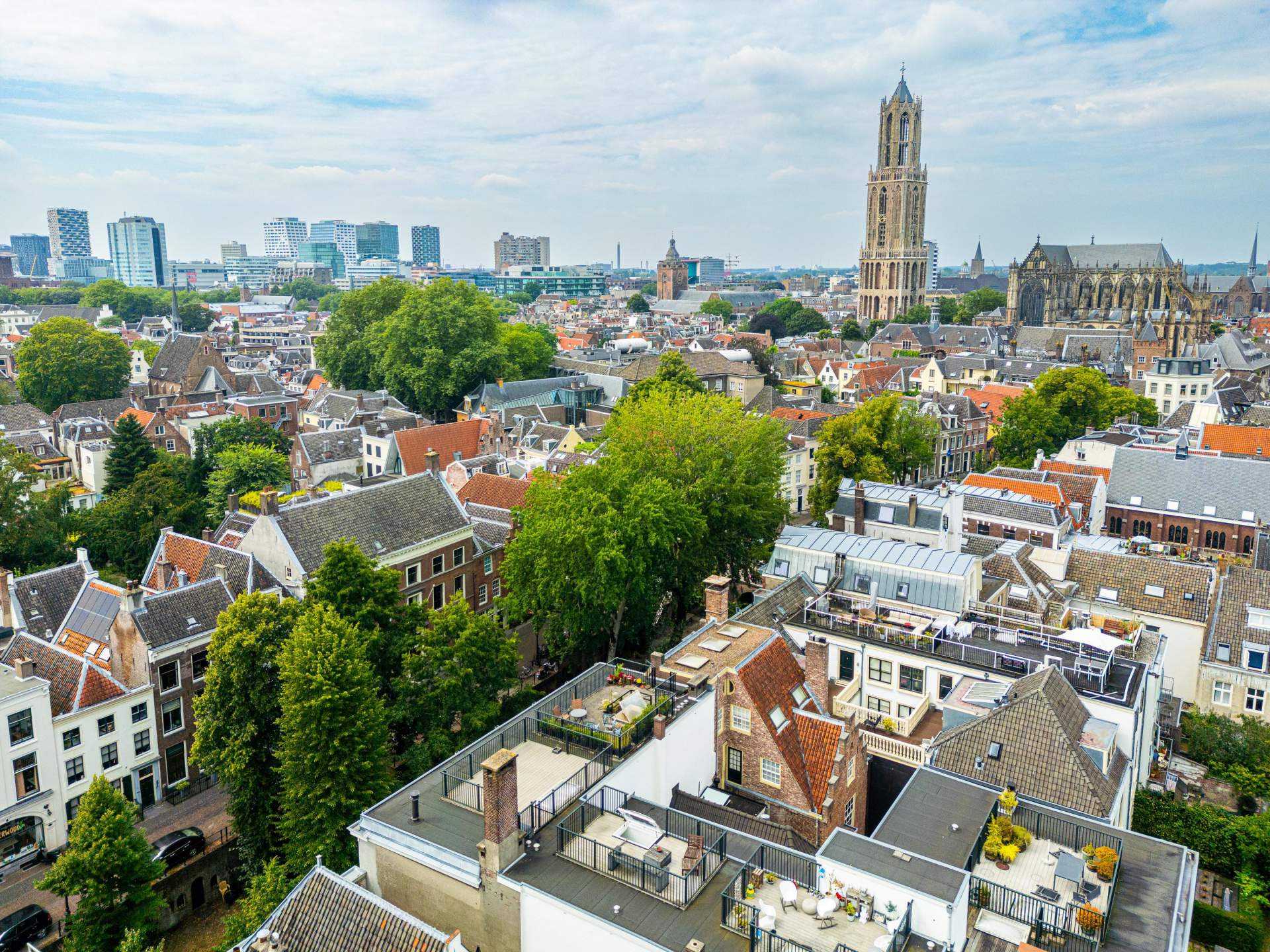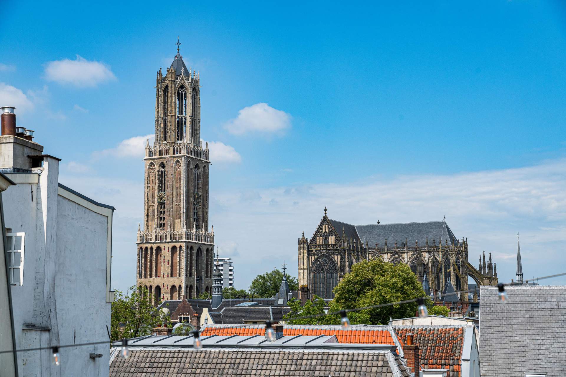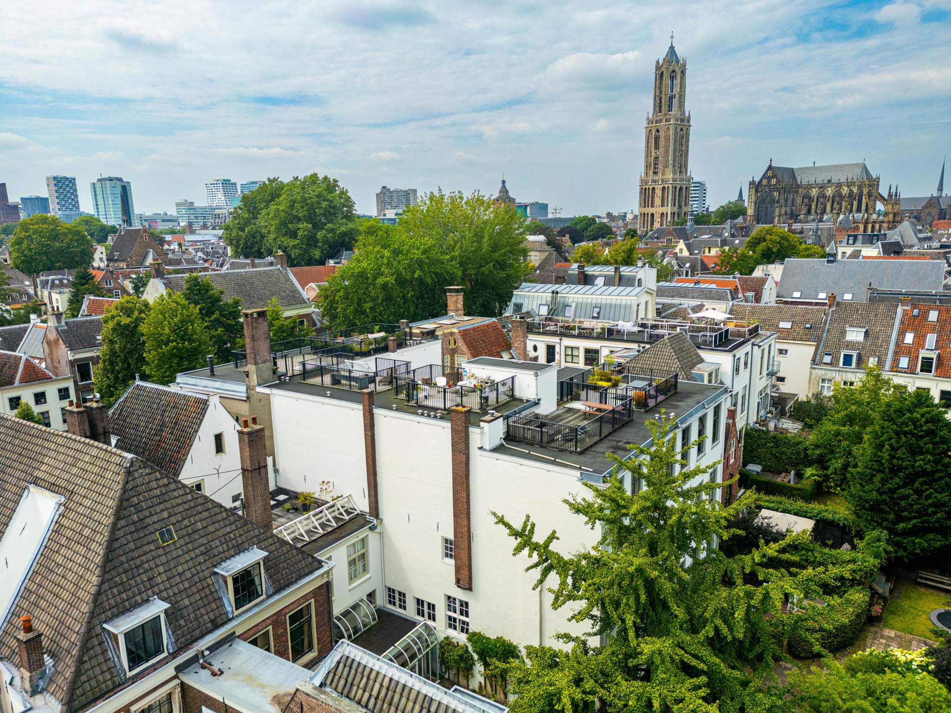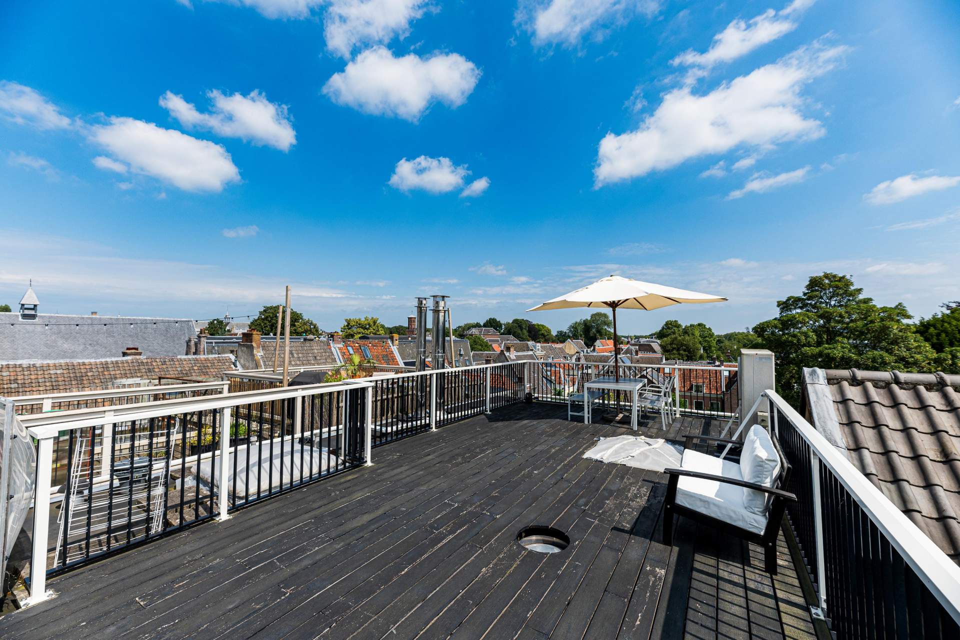 Via een vaste trap in de bijkeuken kom je op het zeer ruime dakterras met een fantastisch uitzicht over het centrum en de Domtoren.