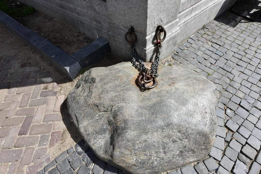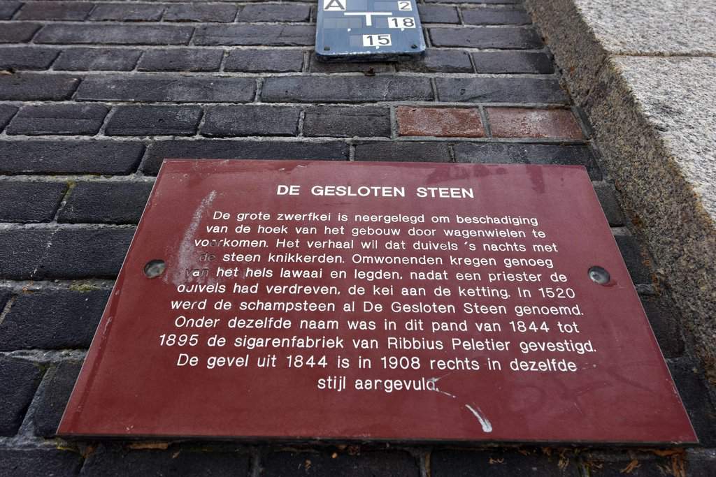 Het pand dateert uit 1844 en heeft gefungeerd als sigarenfabriek. Het gebouw is vooral bekend door de zwerfkei die aan de hoek van het pand geketend zit. Deze is neergelegd als schampsteen en is zo de naamgever van het pand.