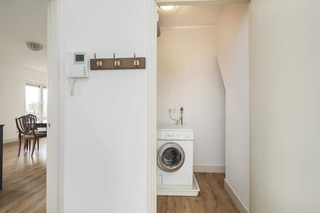 During the renovation in 2015 serious attention was given to insulation and light. The apartment is partly furnished. It has a hall with a separate storage room for i.a. the central heating system and a washer/dryer. The large living room includes an open kitchen, which is equipped with a fridge, freezer, oven, dishwasher and four ring induction hob with extractor hood. The bedroom has a double bed and a large storage cupboard. The bathroom has a washbasin, toilet and a large shower.