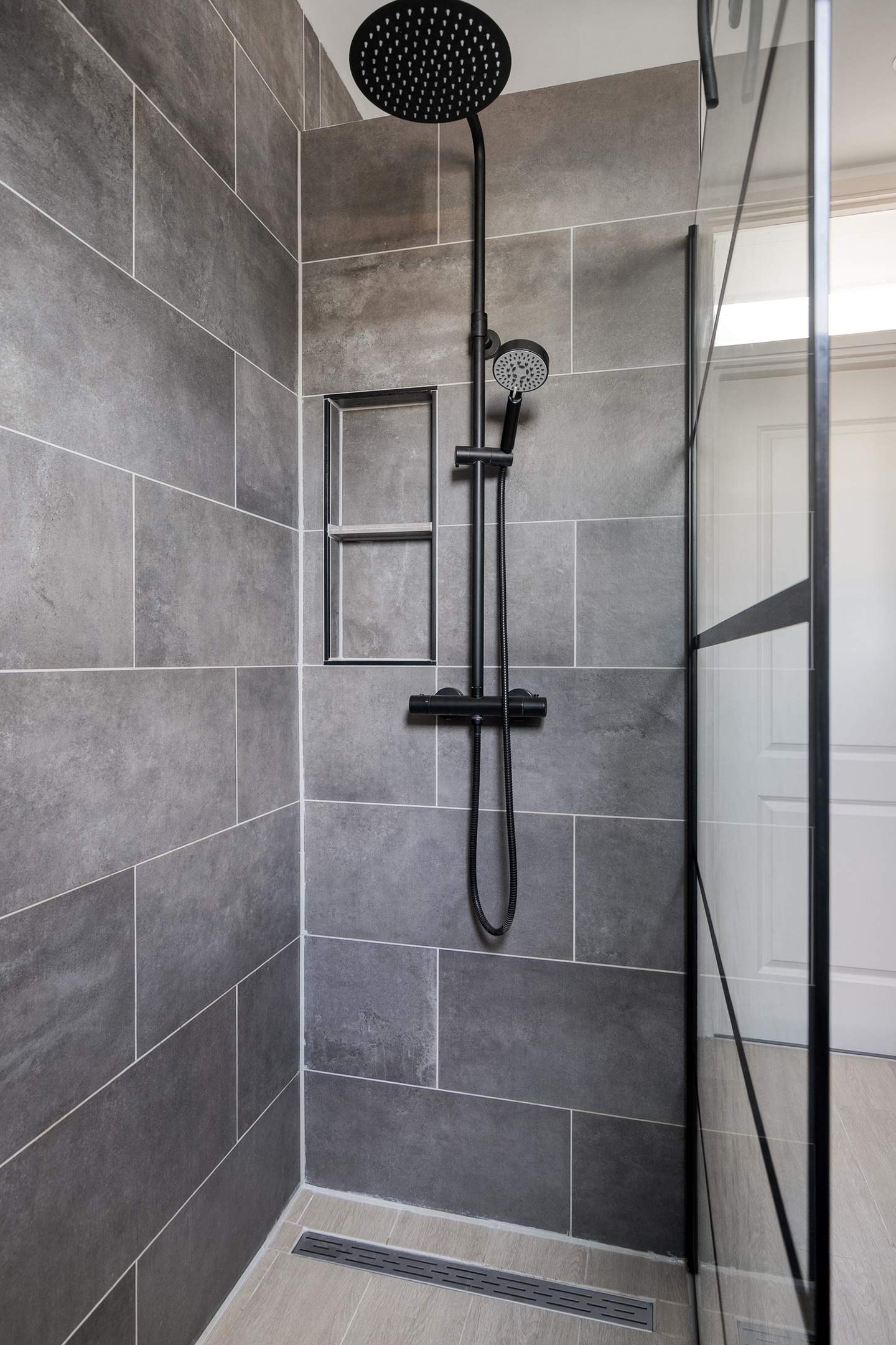 Op de bovenverdieping zijn maar liefst 3 slaapkamers aanwezig. Ideaal voor een gezin, thuiswerkers of logees. De badkamer is luxe en modern uitgevoerd met een hoogwaardige afwerking v.v. een grote inloopdouche, toilet, dubbele wastafel en vloerverwarming.