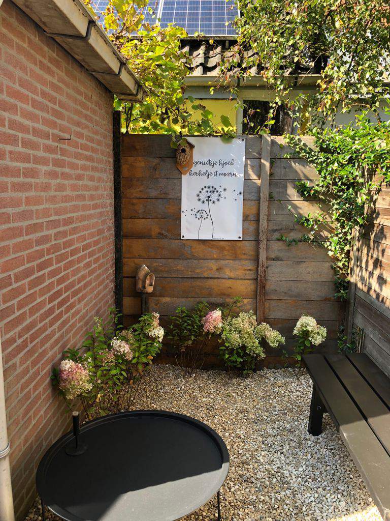 Heerlijke eigen tuin met een schuurtje met veel opbergruimte.
