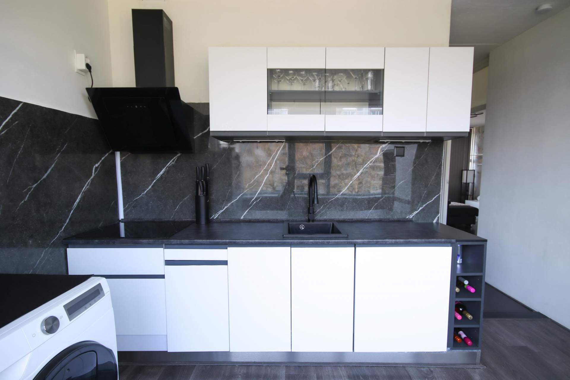 De hal geeft toegang tot de ruime gemoderniseerde keuken v.v. diverse inbouwapparatuur zoals inductie kookplaat, oven, vaatwasser, afzuigkap en wasmachineaansluiting. De koel-vriescombinatie is niet ingebouwd maar hier is wel ruimte voor. Verder is deze ruimte groot genoeg om ook een fijne eethoek te creëren.