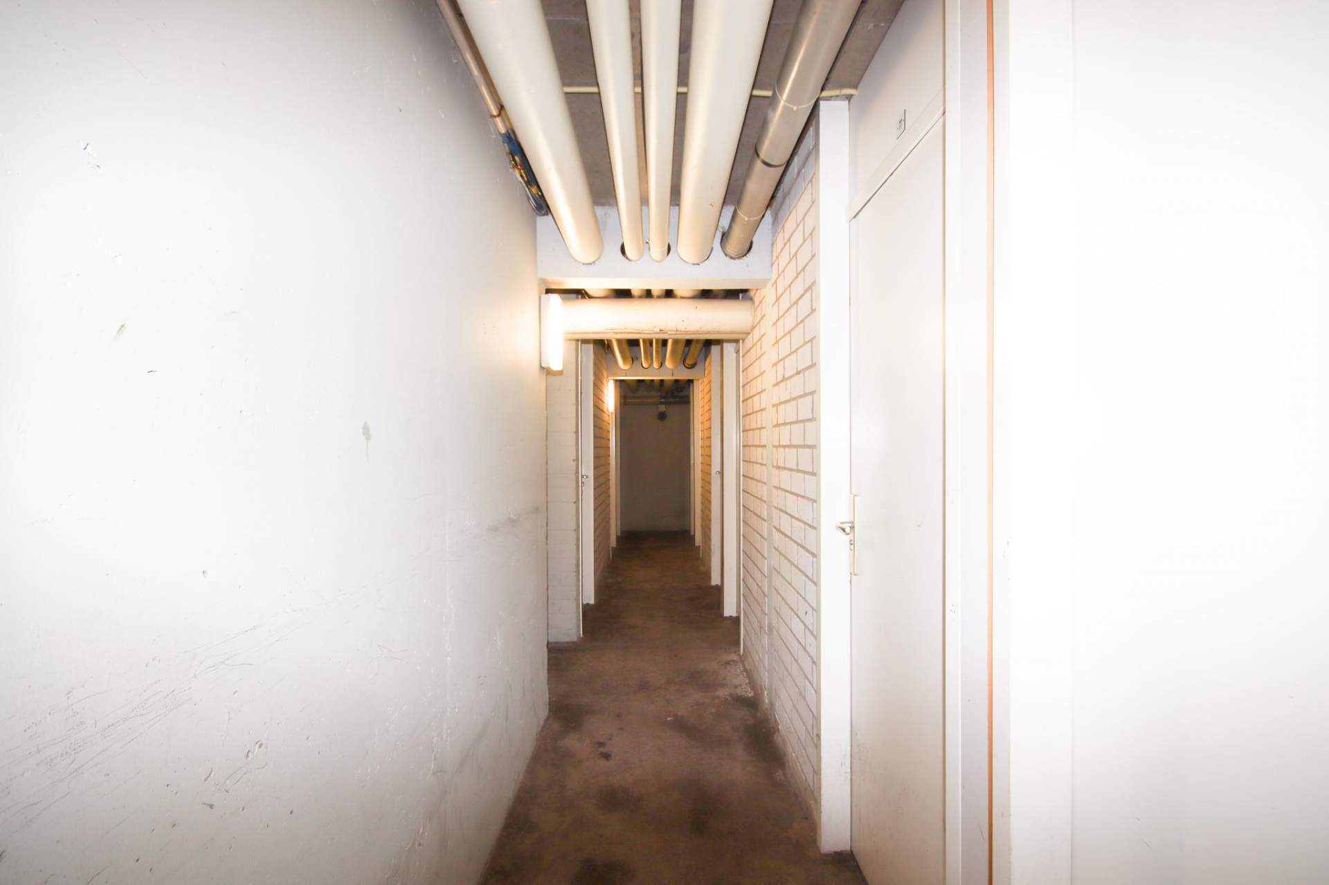Gezamenlijke entree met beltableau en brievenbussen. Toegang tot de berging in ondergelegen verdieping (-1).