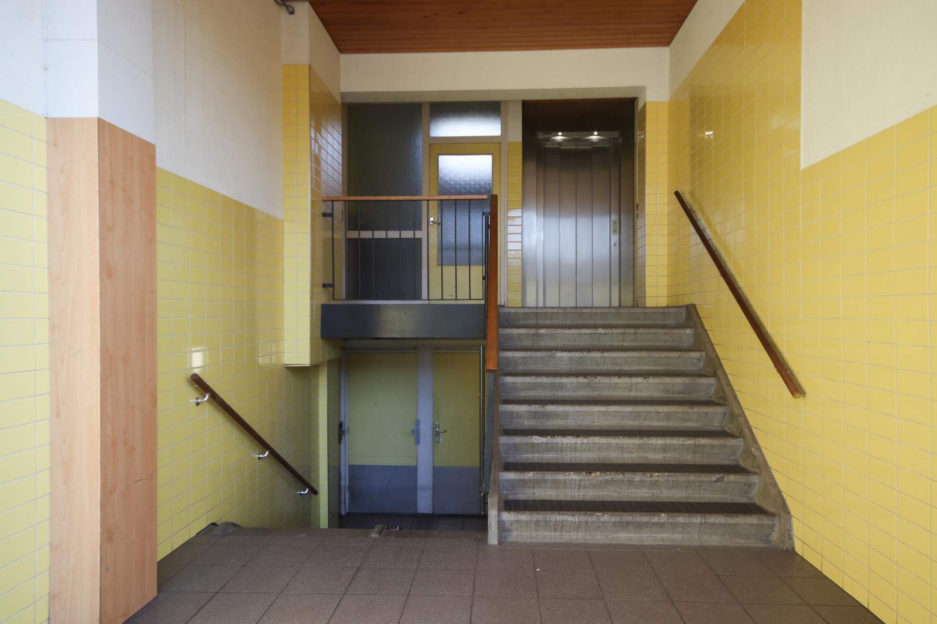 Via enkele treden bereik je het trappenhuis en de lift naar de andere verdiepingen.