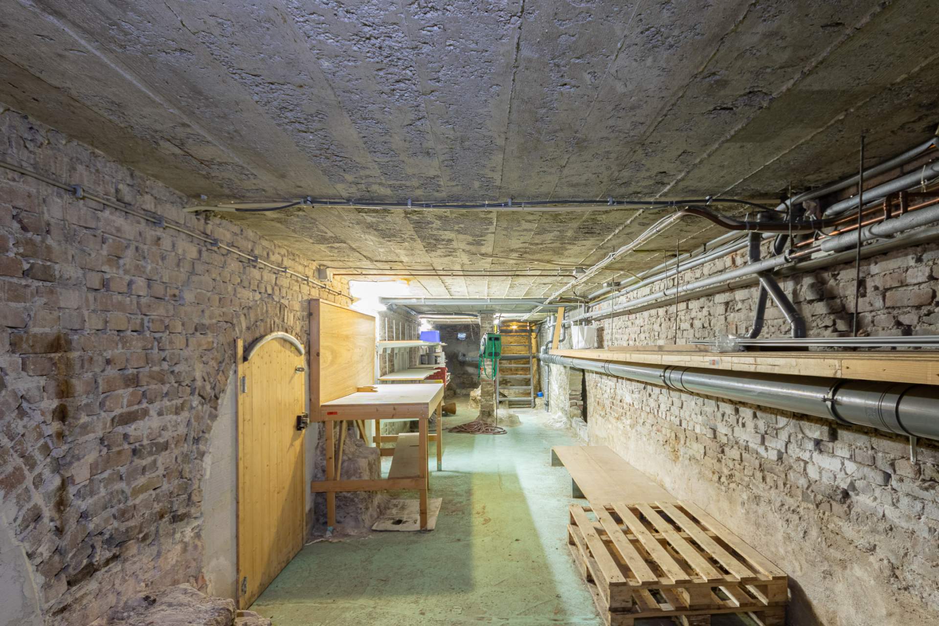 Vanuit de hal is er toegang tot de zeer ruime kelder op stahoogte, ideaal voor opslag van fietsen, wijn, seizoensspullen of extra bergruimte.
