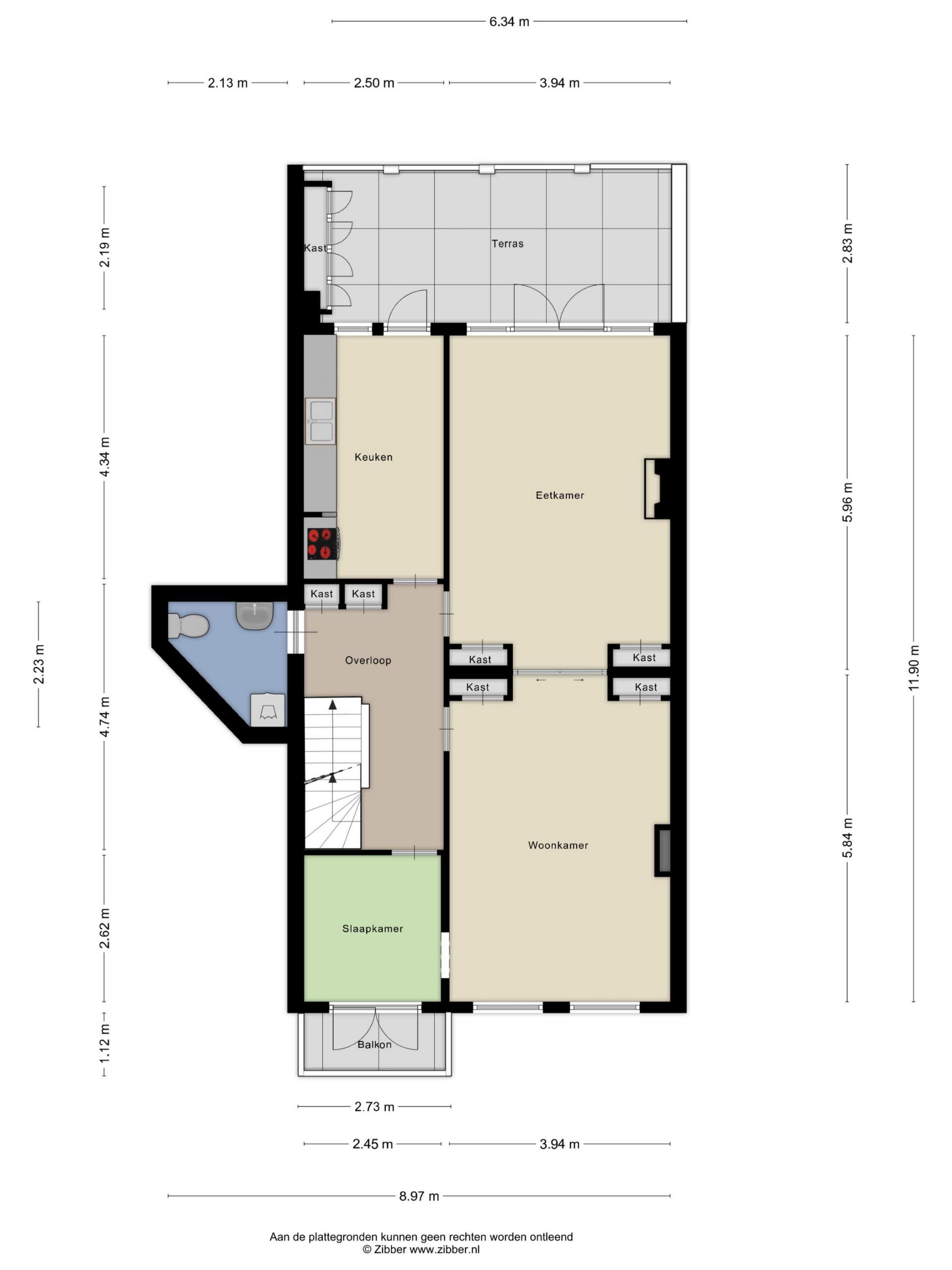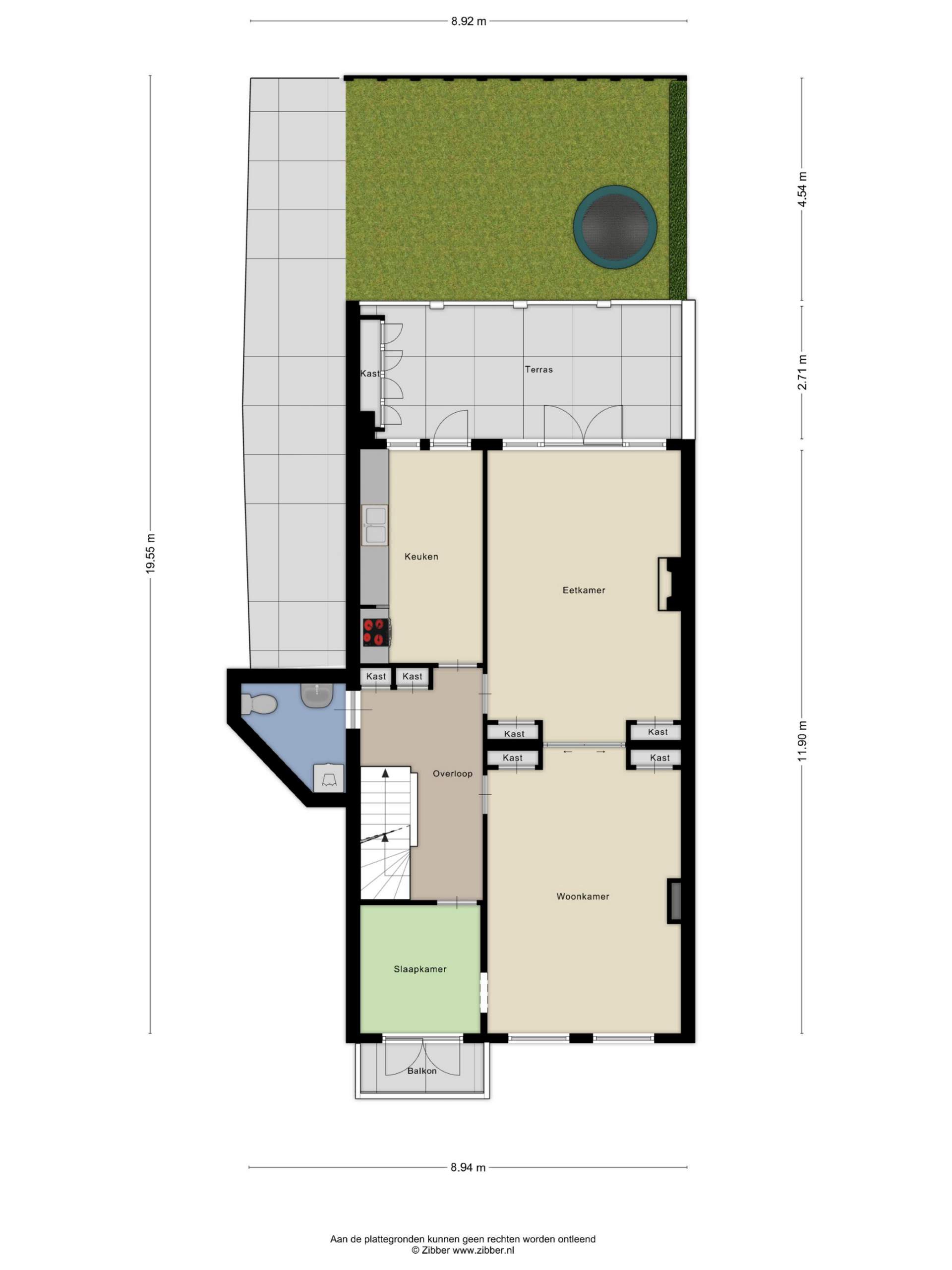 De afmetingen per ruimte zijn te bekijken op de plattegronden.