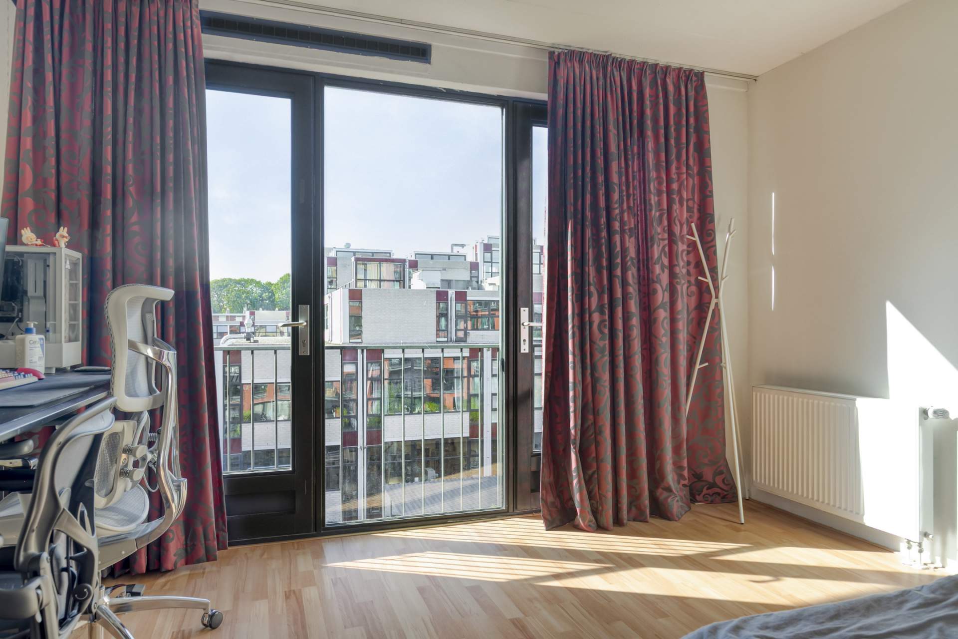 The apartment is located on the 3rd floor of a modern apartment complex, which features a communal garden, roof terrace, courtyard, and bicycle storage. The apartment is part of an active and (financially) healthy Homeowners' Association.