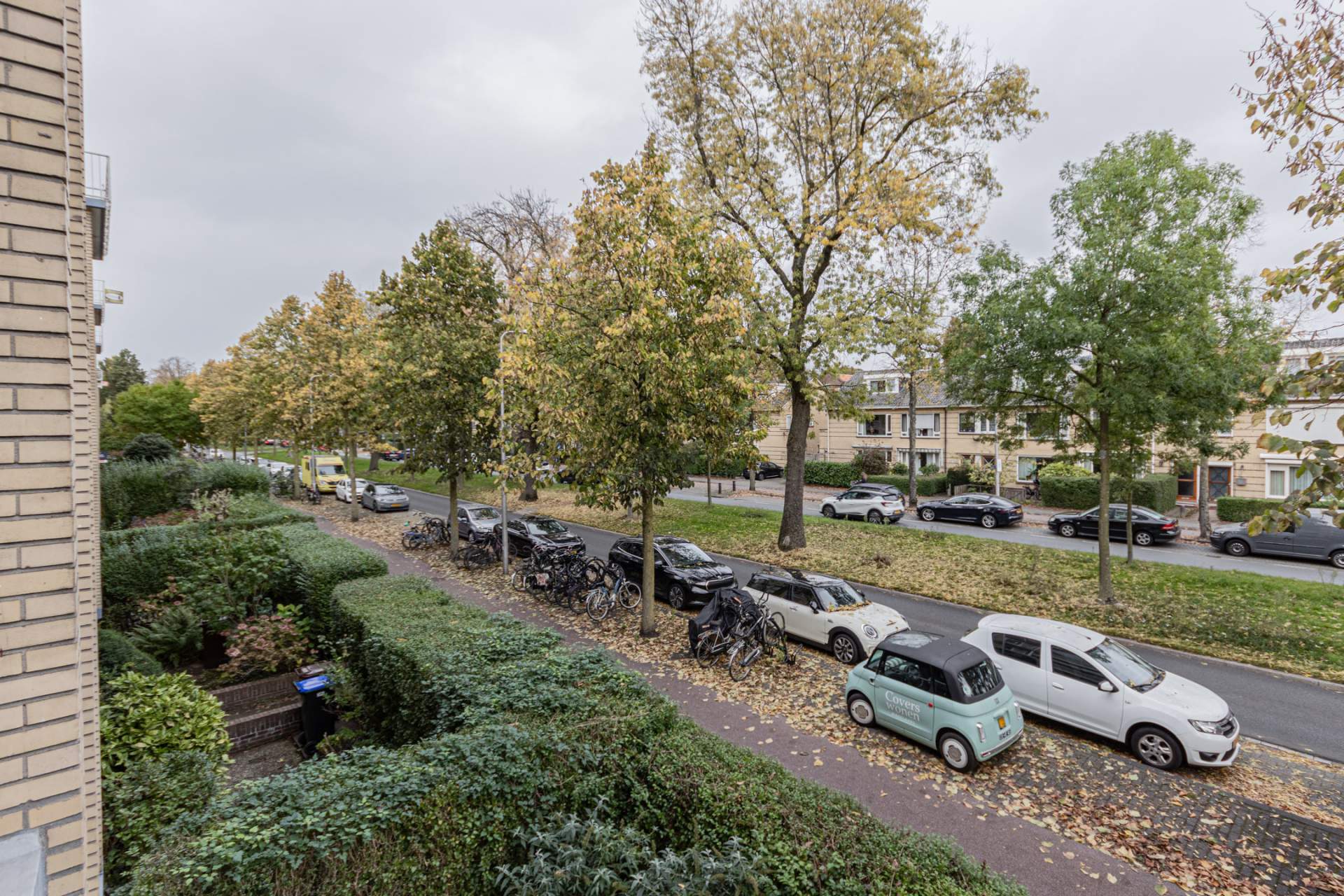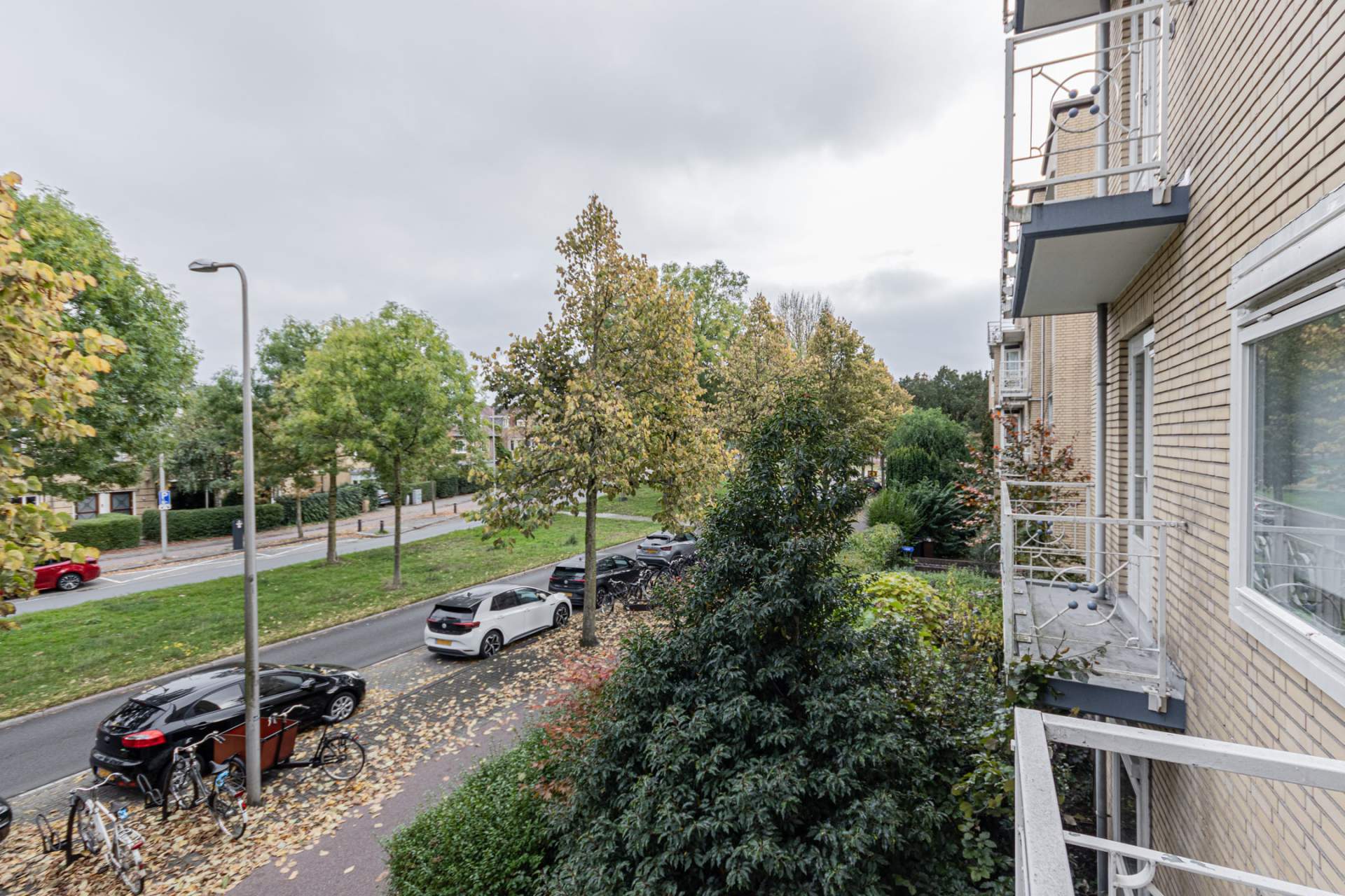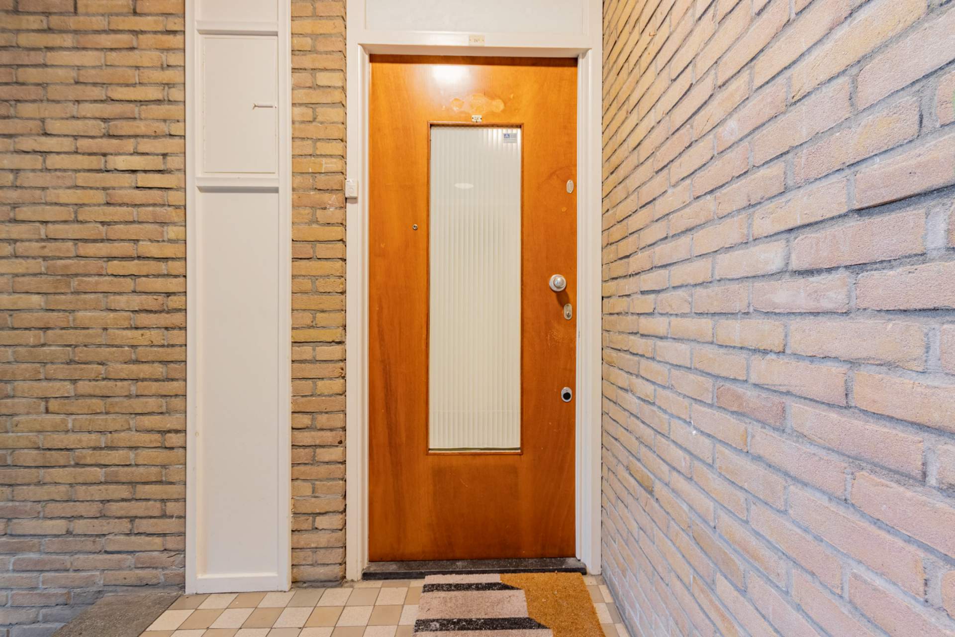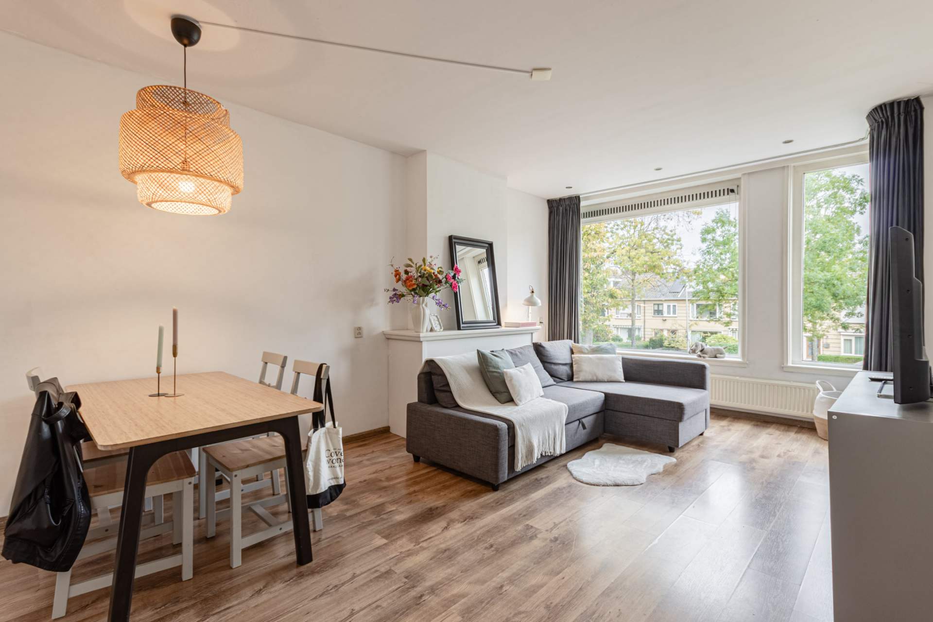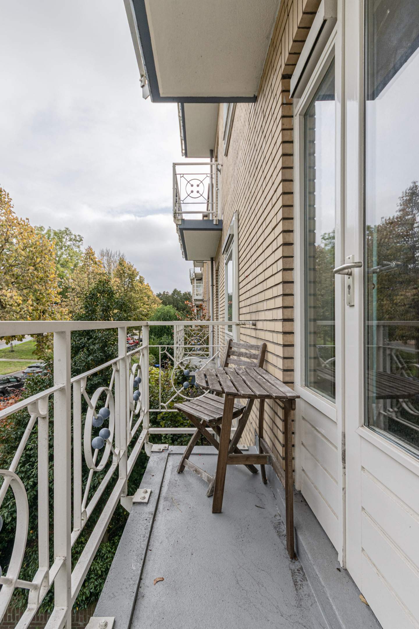 Entree in de hal met meterkast, toilet en een ruimte voor de garderobe. De woonkamer heeft een erker en een grote raampartij waardoor je een lichte, sfeervolle woonkamer hebt. De keuken geeft toegang tot het balkon aan de achterzijde en is uitgevoerd met een koel-vries combinatie, gaskookplaat met een oven, magnetron, afzuigkap en een vaatwasser. Er zijn twee slaapkamers. De grote slaapkamer heeft ruimte voor een groot een tweepersoonsbed en de tweede slaapkamer is momenteel ingericht als werkkamer. Via de tweede slaapkamer kom je op het balkon aan de voorzijde.