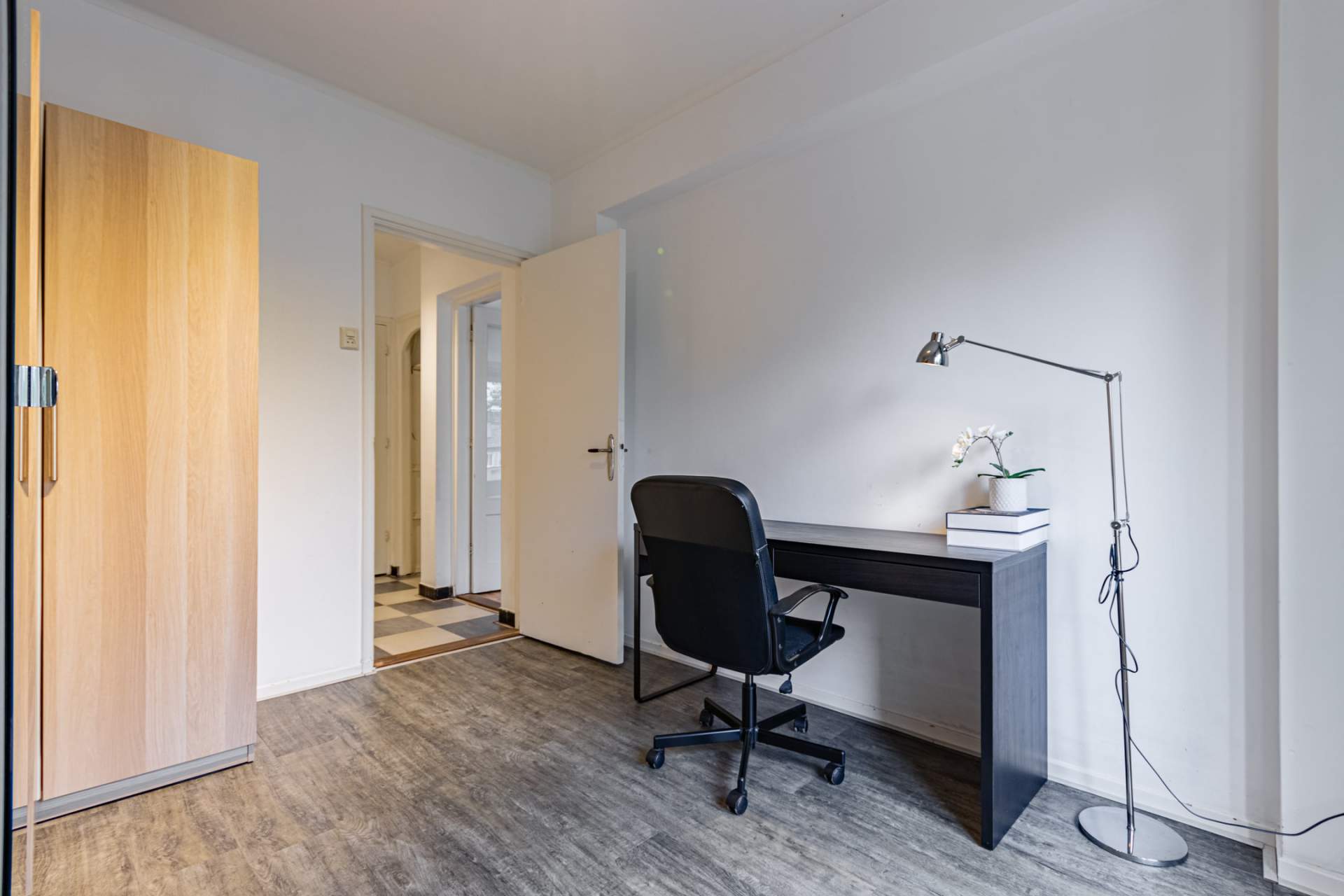 There are two bedrooms: the master bedroom offers enough space for a large double bed, and the second bedroom is currently set up as an office. From the second bedroom, you can access the front balcony.