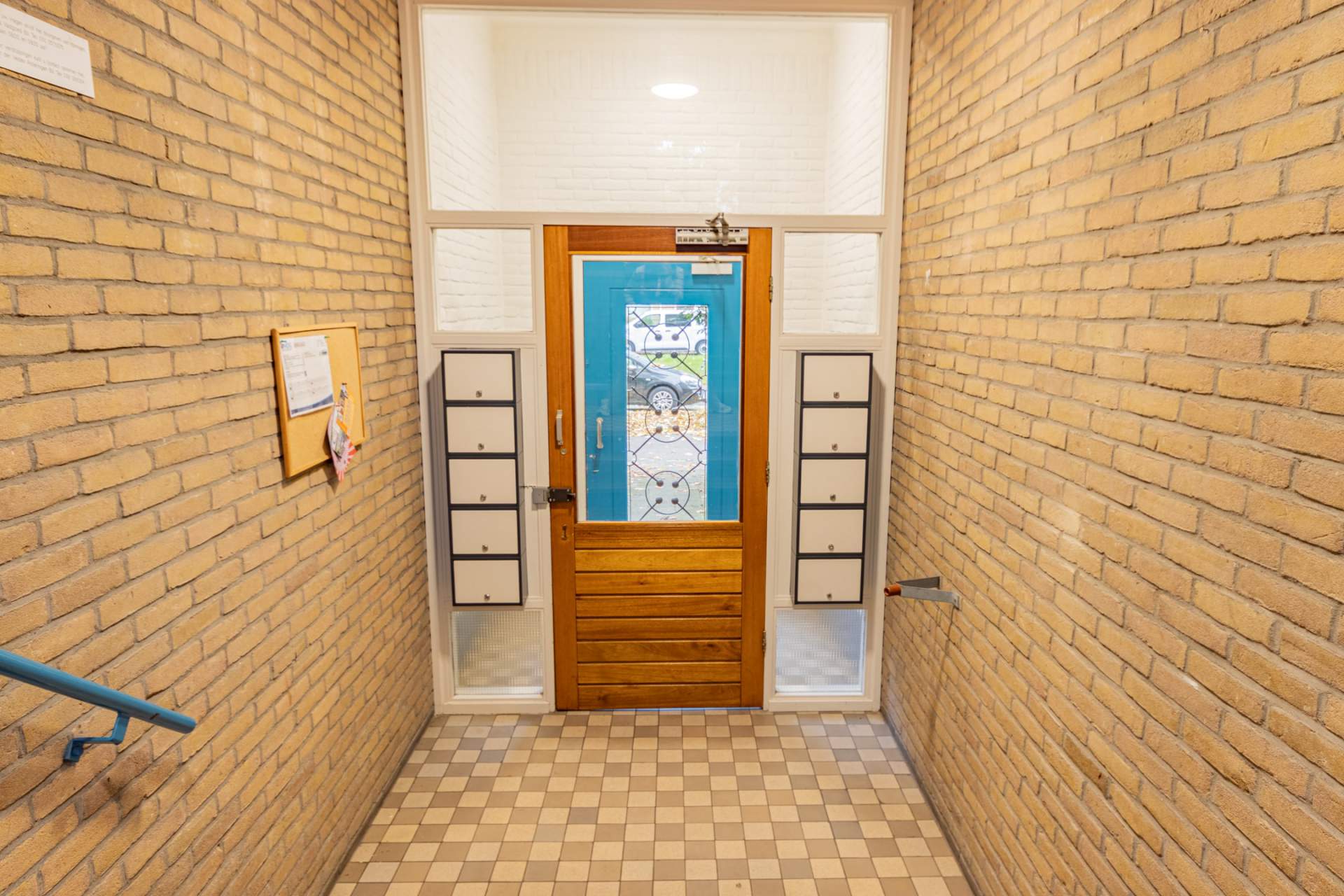 Afgesloten entree met brievenbussen en intercom. Hal met trappenhuis en toegang tot de bergingen.