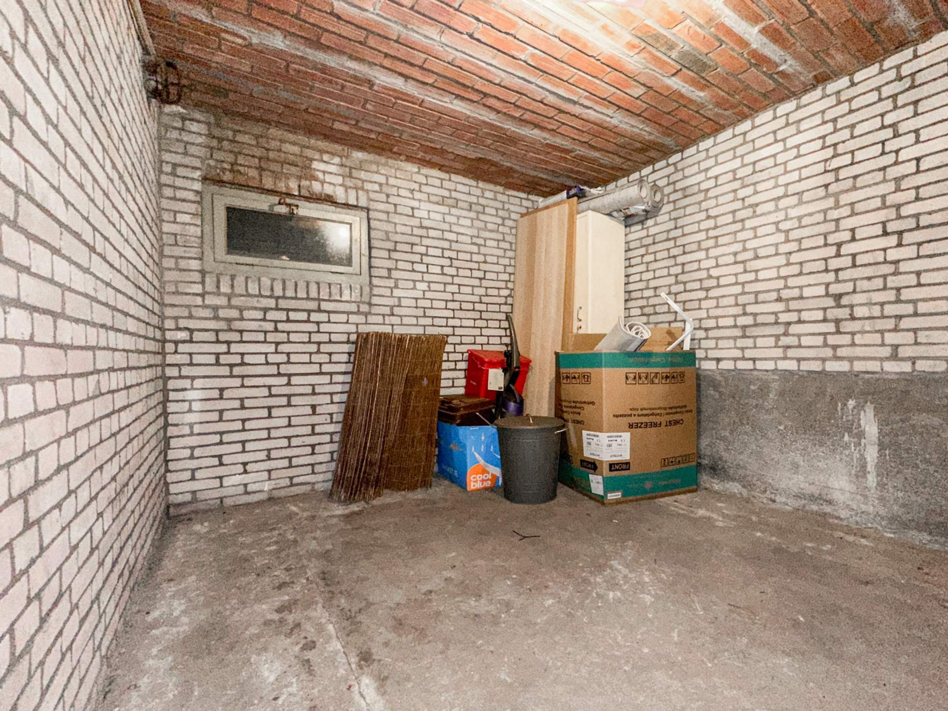 De badkamer is voorzien van een wastafel en een douche. Hier staan ook de wasmachine en de wasdroger. Beneden in de onderbouw is een ruime eigen berging.