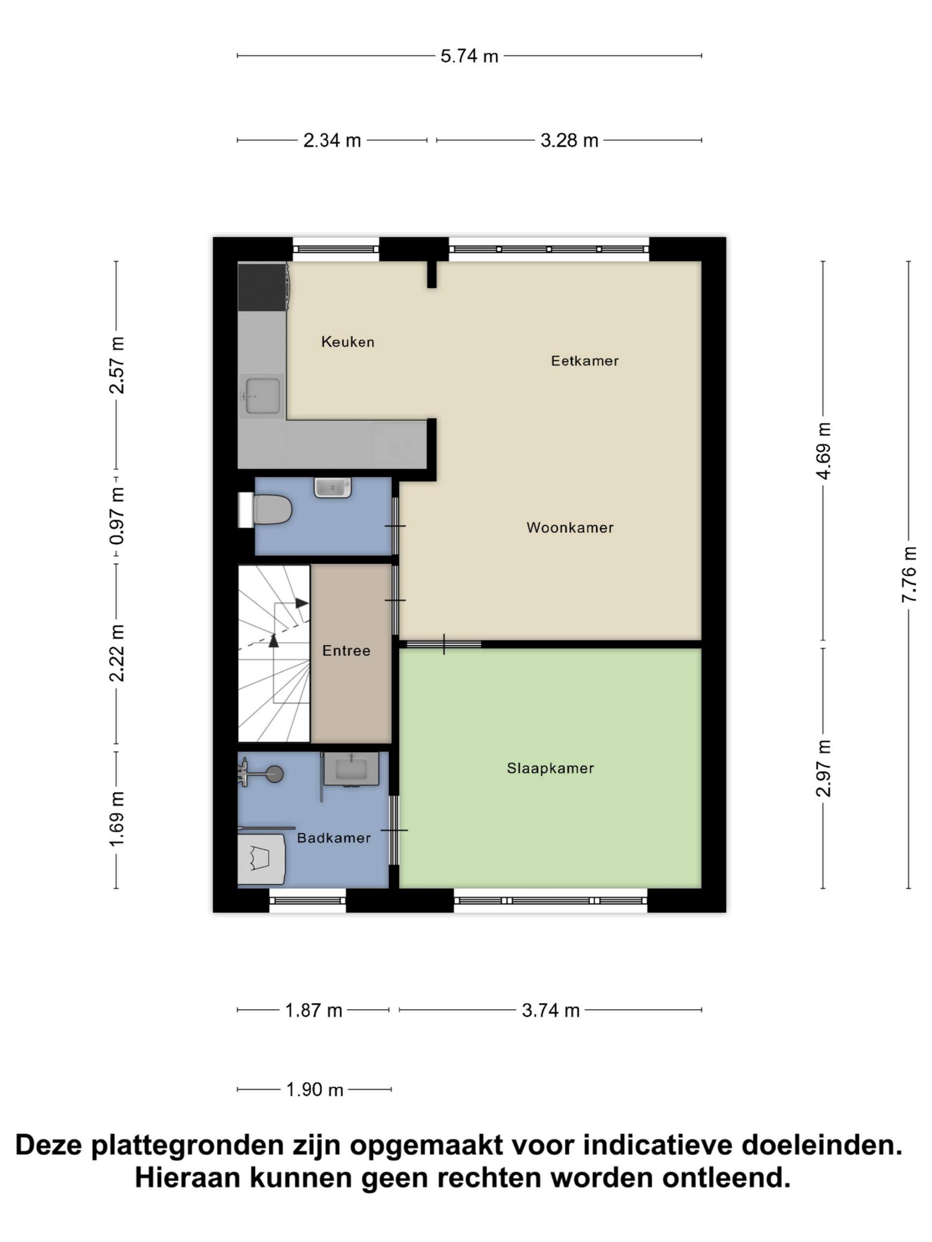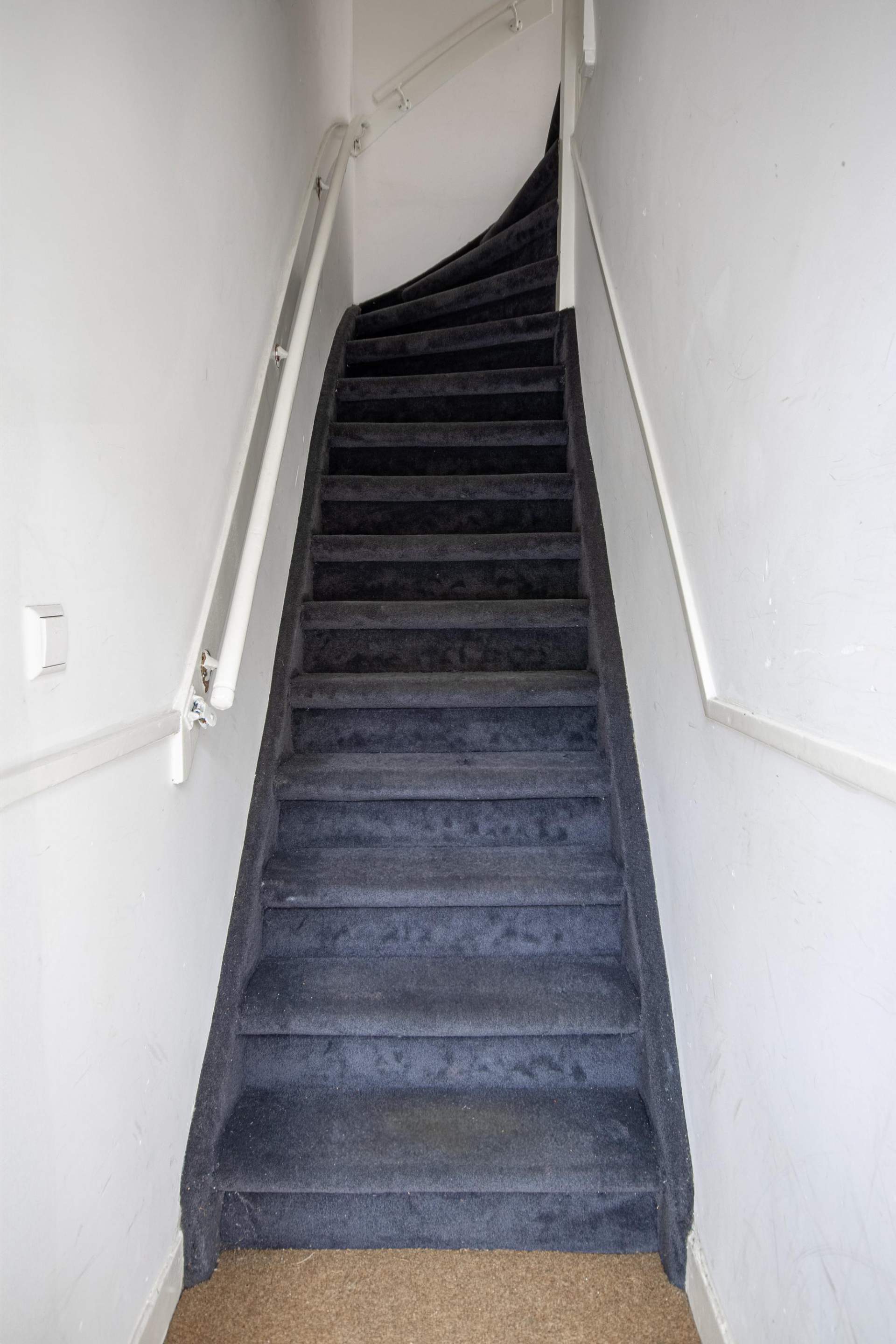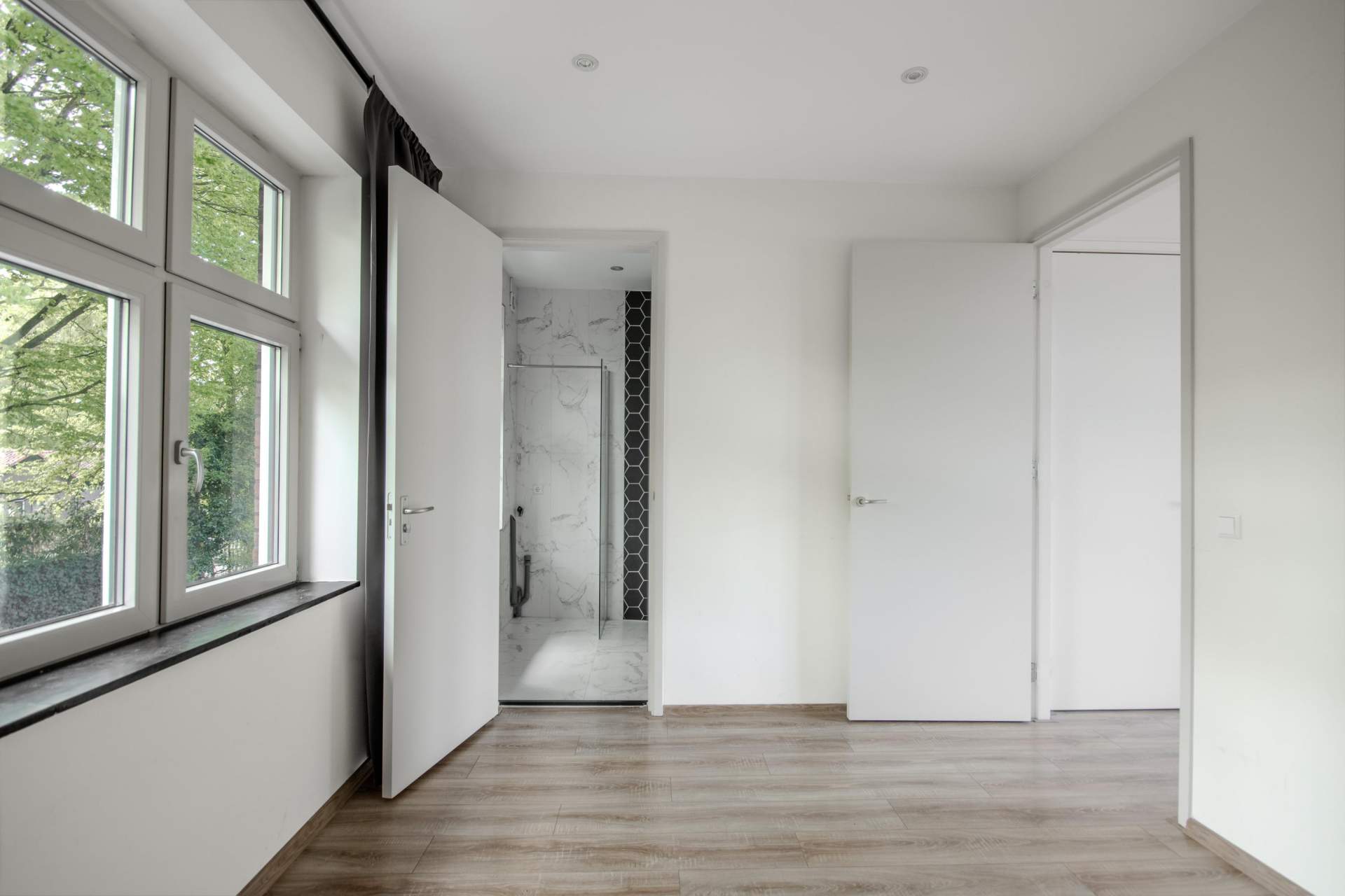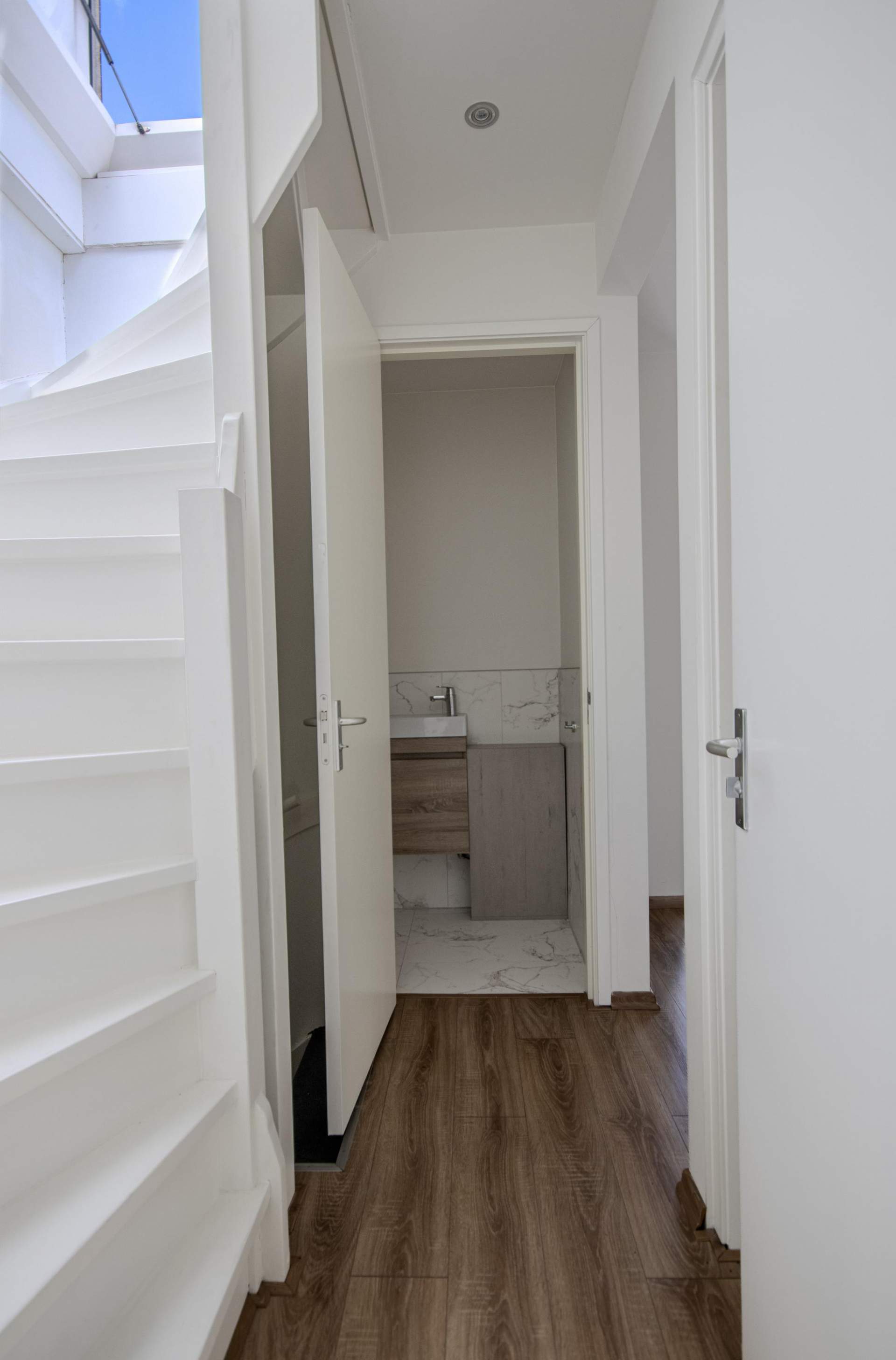 Eigen deur en trapopgang naar boven. Ook dit appartement is voorzien van een luxe keuken, moderne badkamer, apart toilet, dubbel glas, inbouwspots en een comfortabele slaapkamer aan de voorzijde.