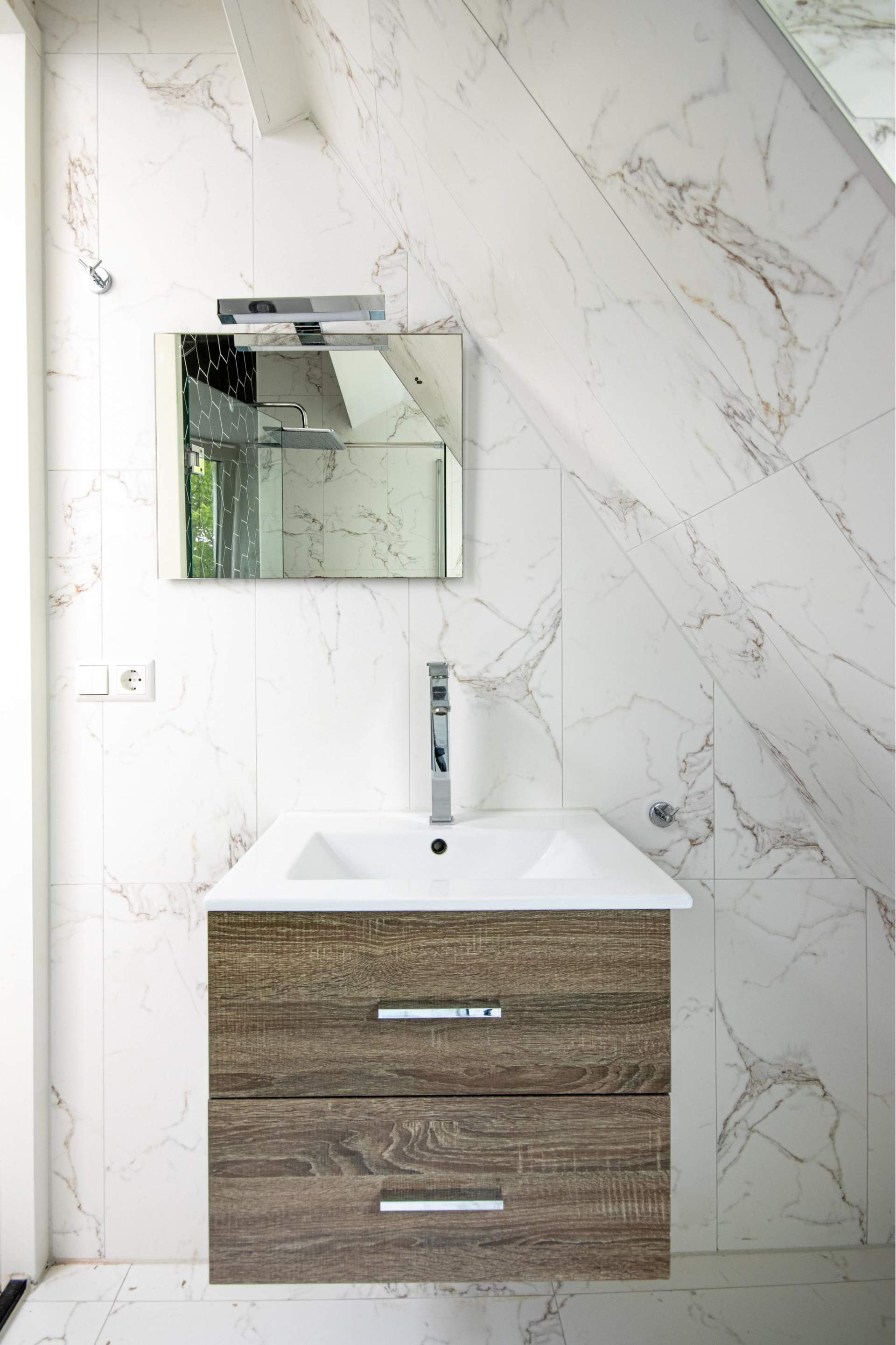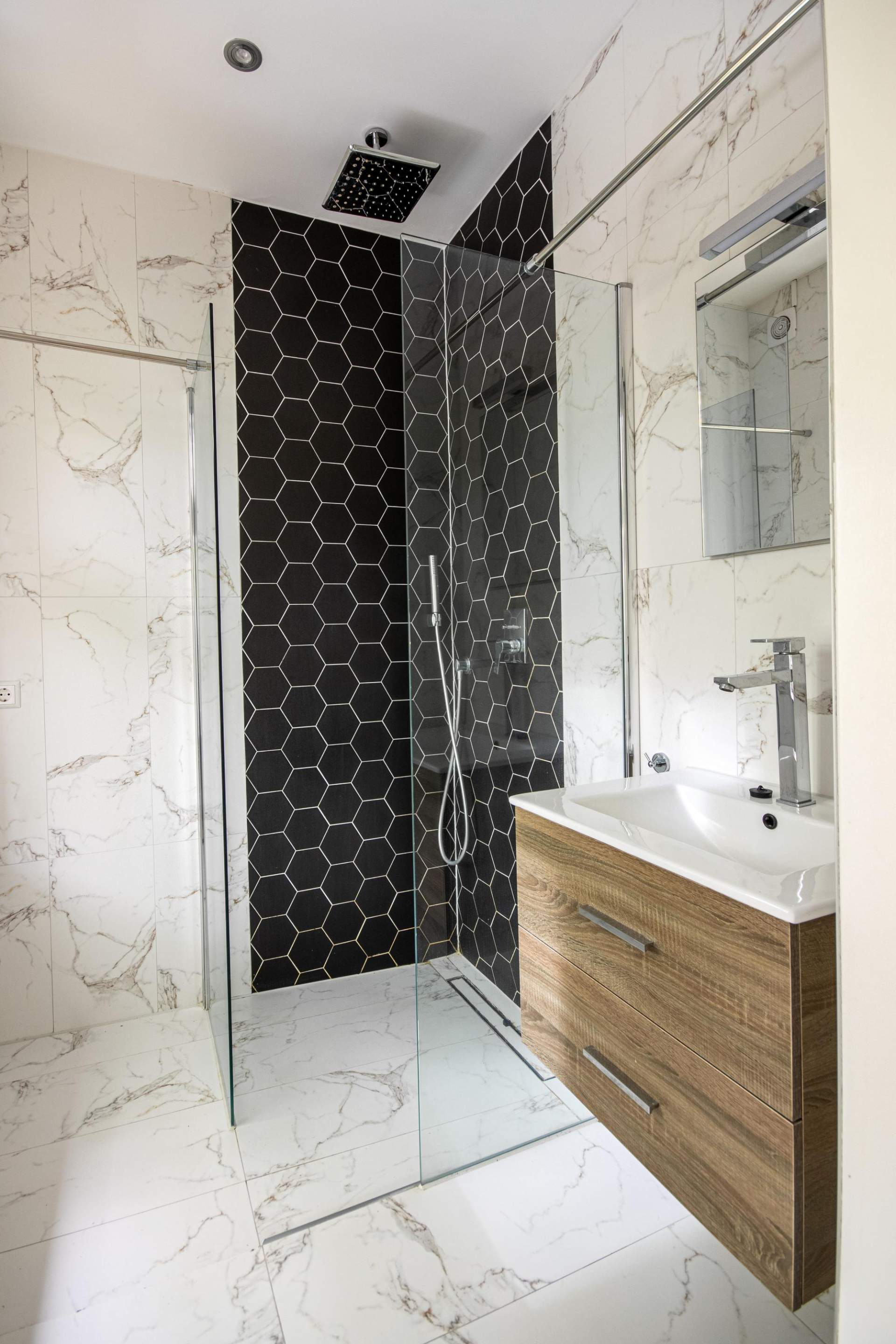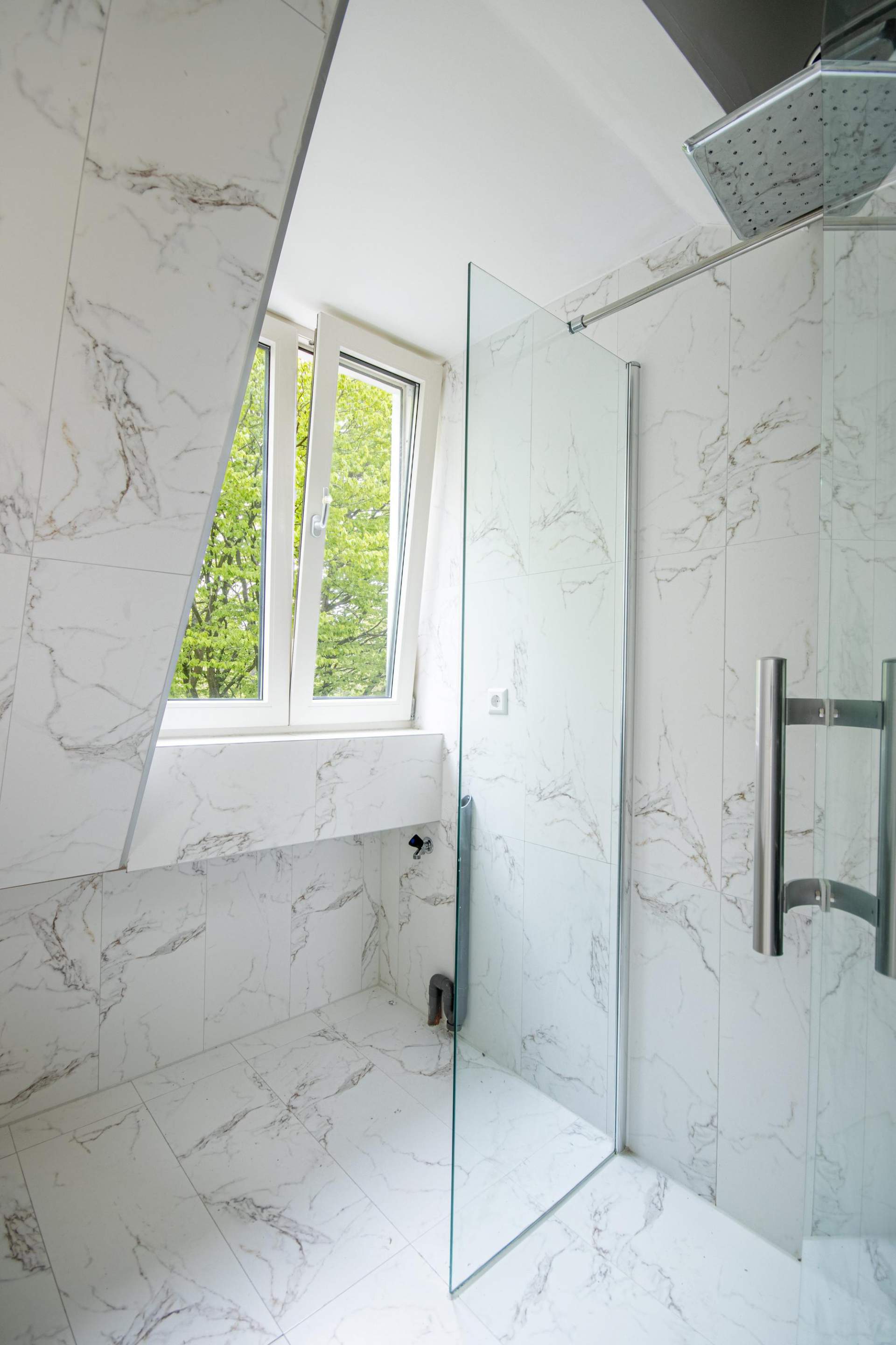 - Badkamers met luxe inloopdouche en wastafelmeubel;