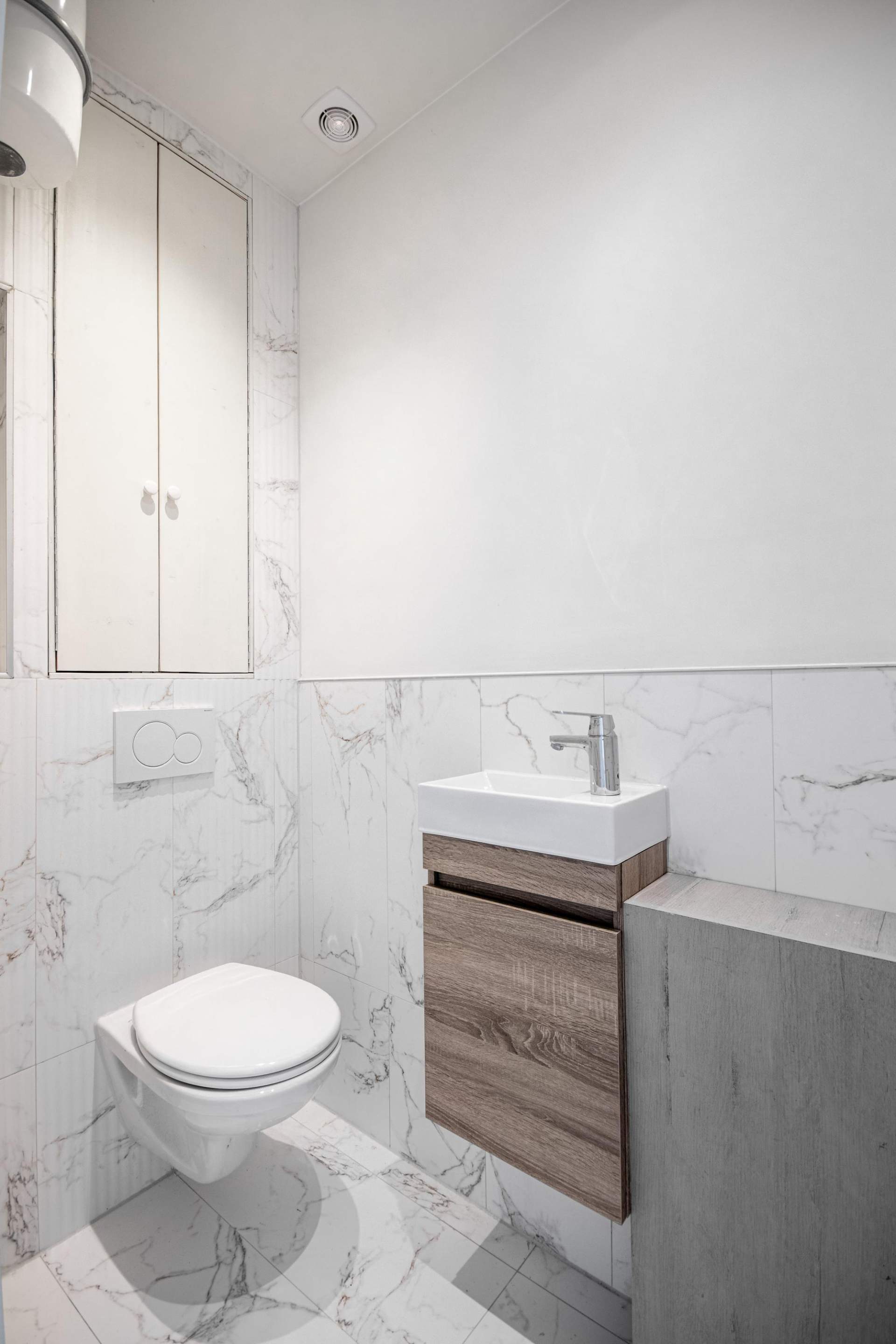 Private door and staircase to the upper floor. This apartment also has a luxurious kitchen, modern bathroom, separate toilet, double glazing, built-in spotlights and a comfortable bedroom at the front.