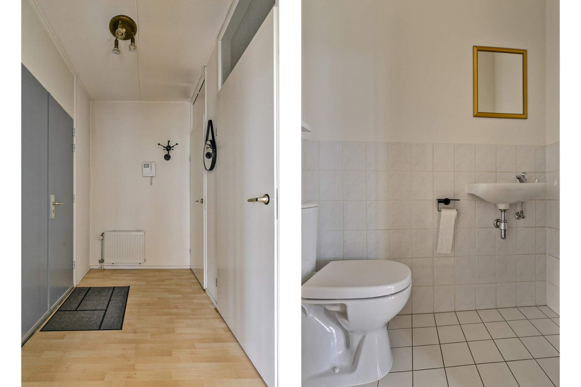 Entree in de hal met een meterkast en een apart toilet welke is vernieuwd in 2023.