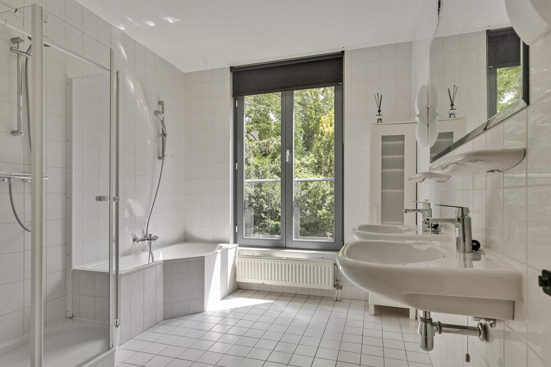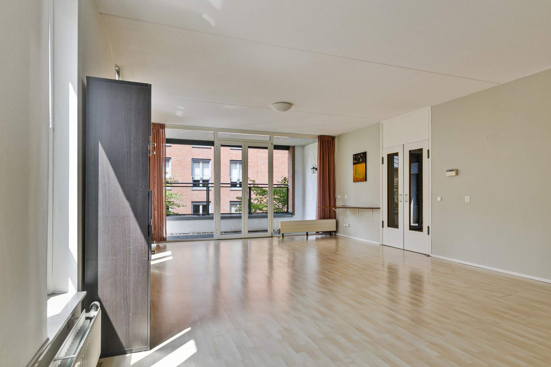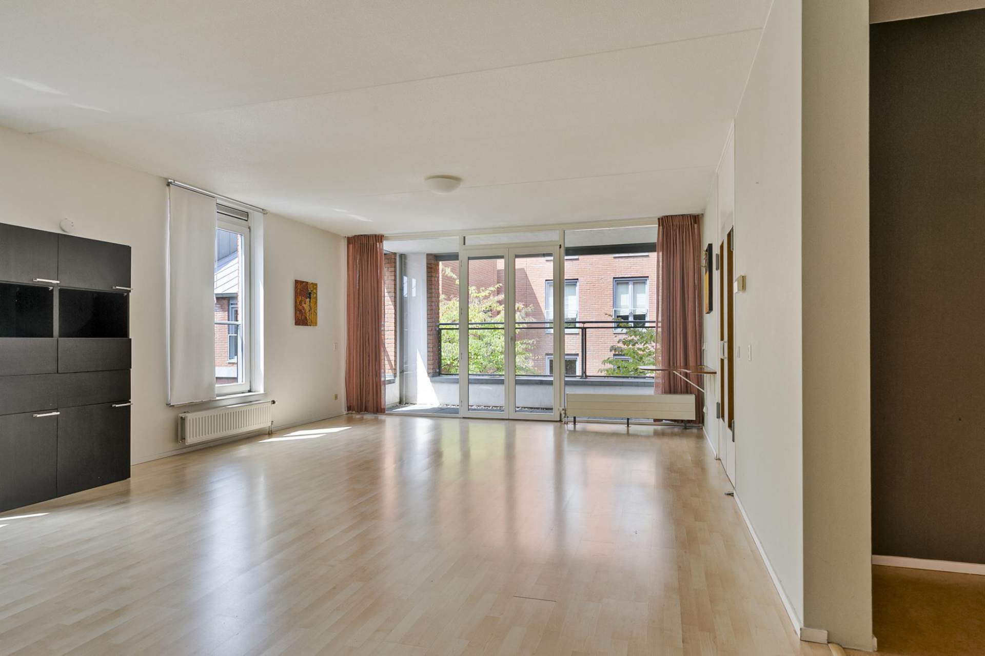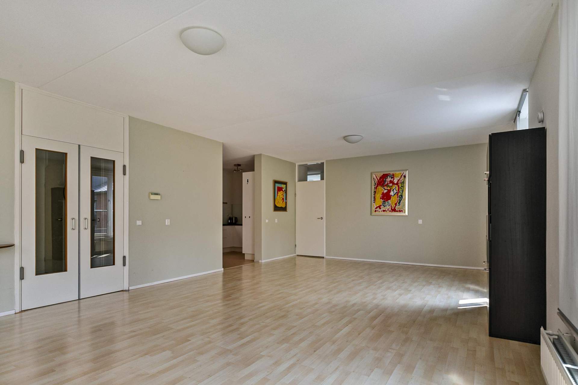 The very spacious living room (8.44 x 5.13 m) can be entered via double doors with nice windows and natural light.