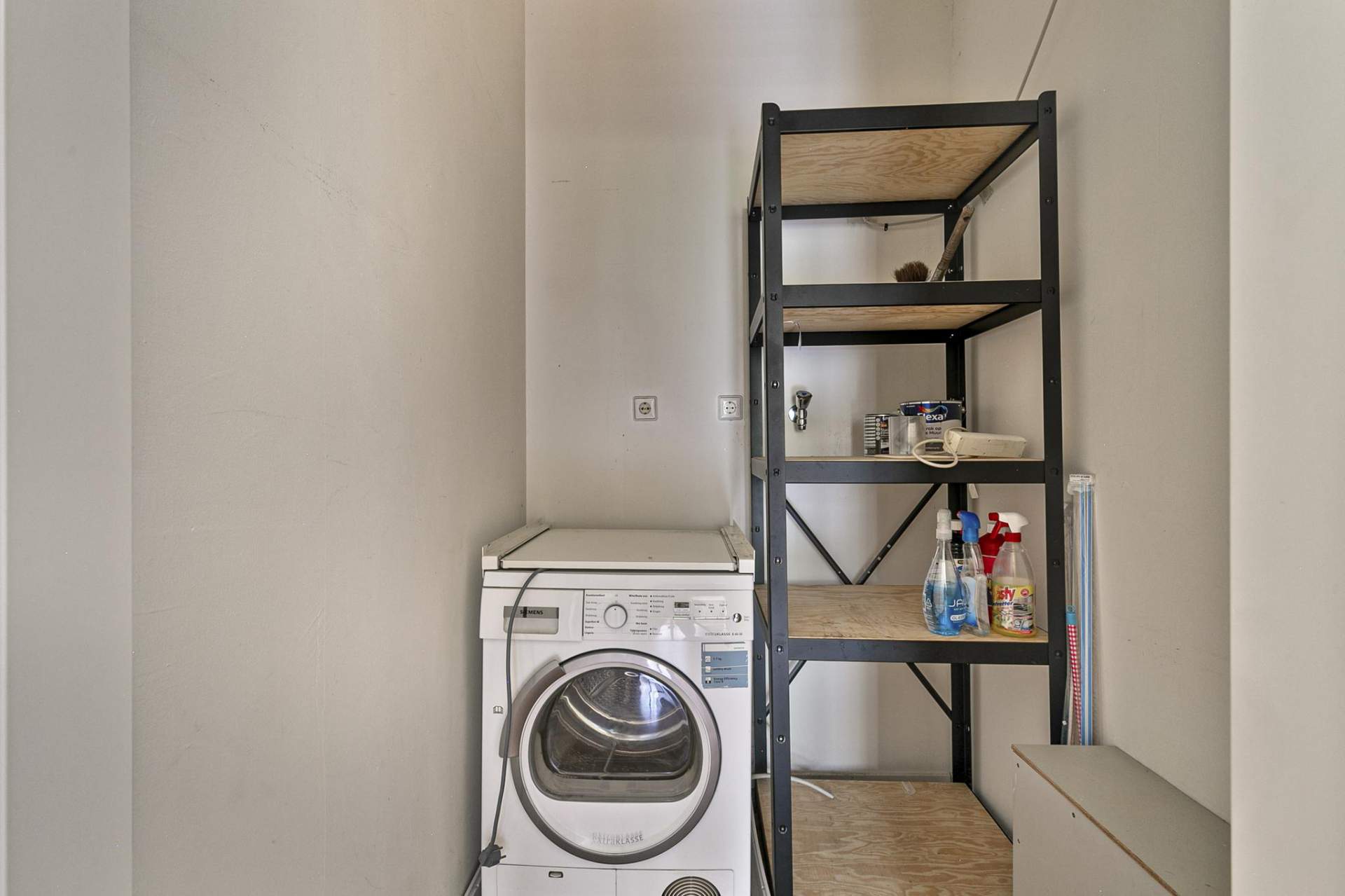 Tevens is er een aparte wasruimte aanwezig met aansluiting voor de wasmachine en de droger en extra mogelijkheid tot opbergen van spullen.