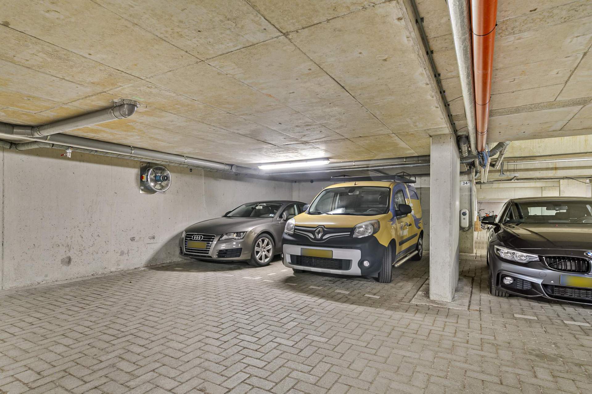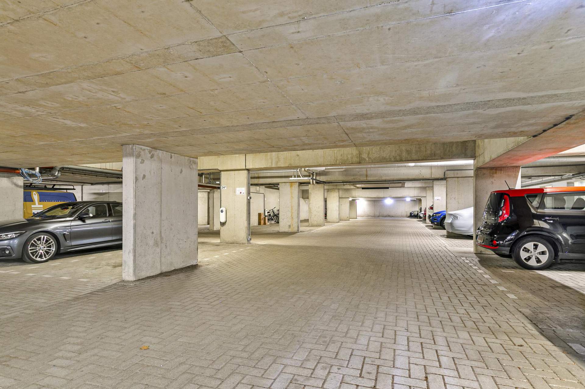 De parkeerplaats in de kelder heeft een afmeting van 5.00m x 2,60m en er is voor degene met een elektrisch voertuig (in overleg) een mogelijkheid om gebruik te maken van een aanwezige laadpaal.