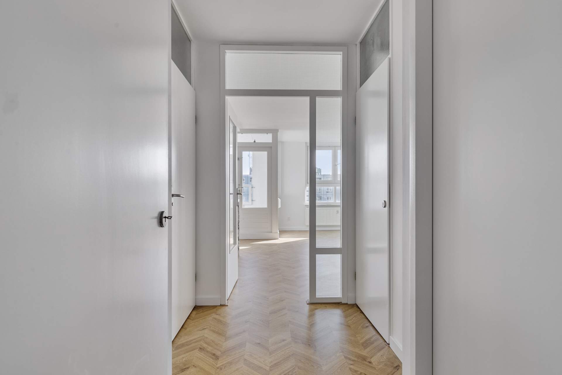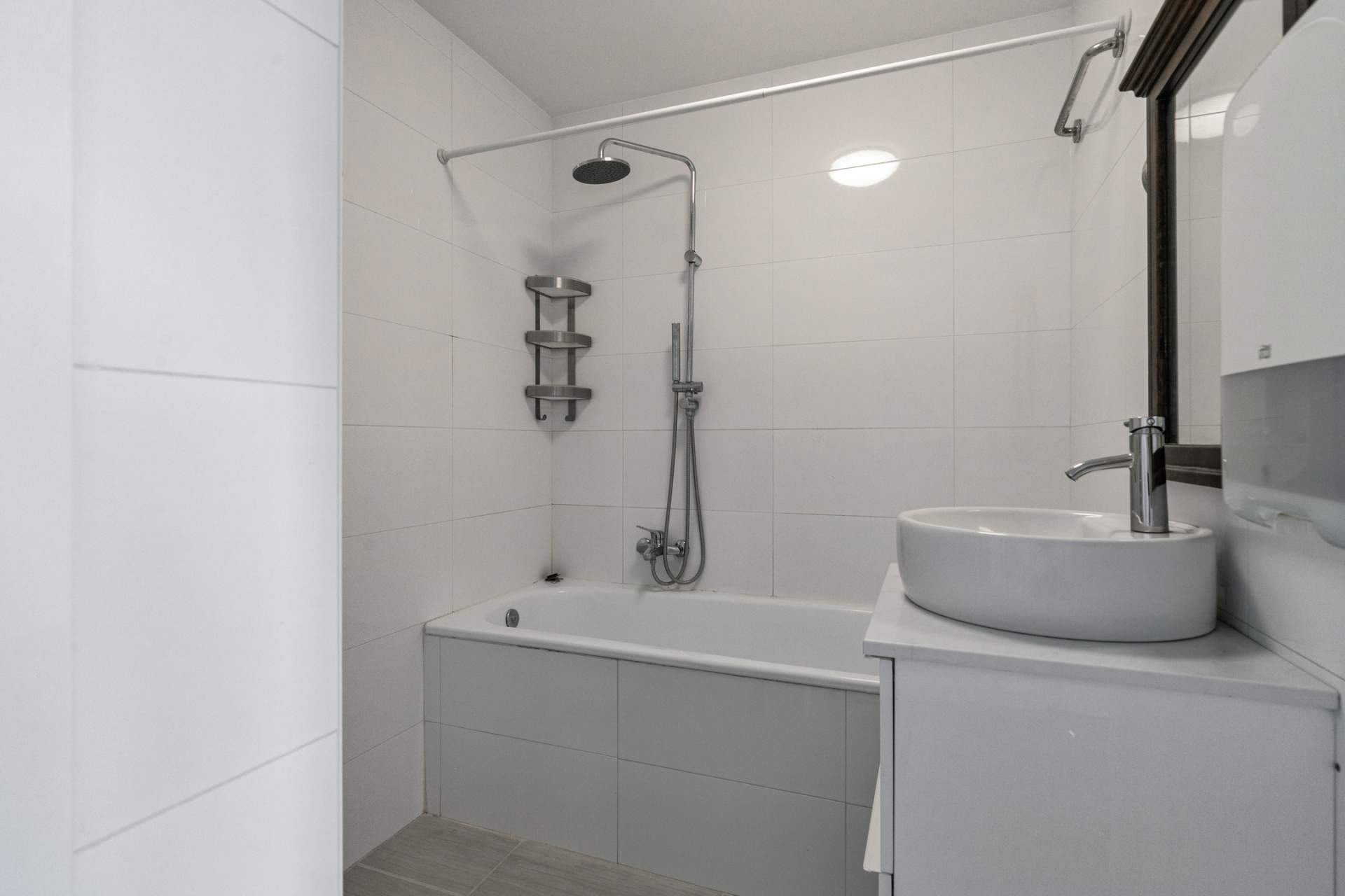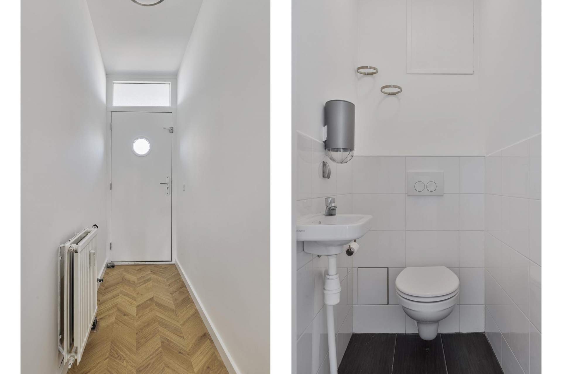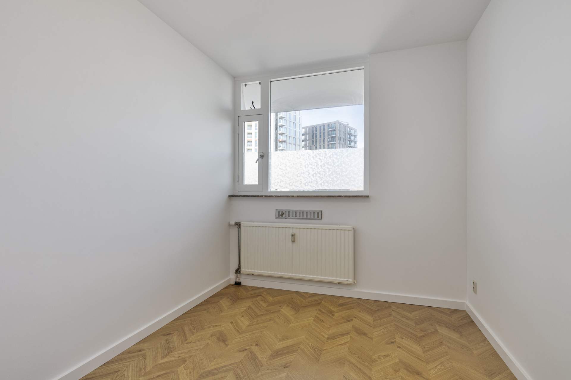 The apartment has two bedrooms, perfectly suited as a master bedroom and an extra work or bedroom. The bathroom is equipped with a stylish washbasin, a bath and a washing machine connection. There is also a separate toilet with a washbasin, which offers extra convenience and privacy.