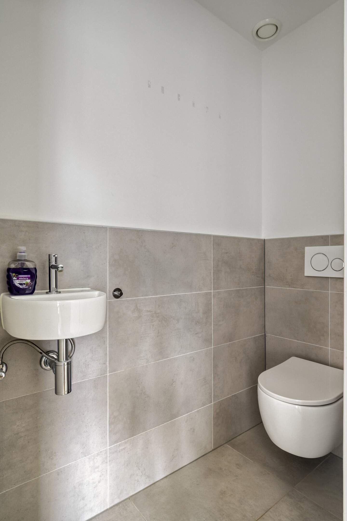 Via de eigen entree op de begane grond betreed je de woning. Vanuit hier ga je met de trap naar de eerste verdieping, waar je uitkomt op de overloop. Deze geeft toegang tot een moderne toiletruimte en de ruime en lichte woonkamer met open, moderne keuken.