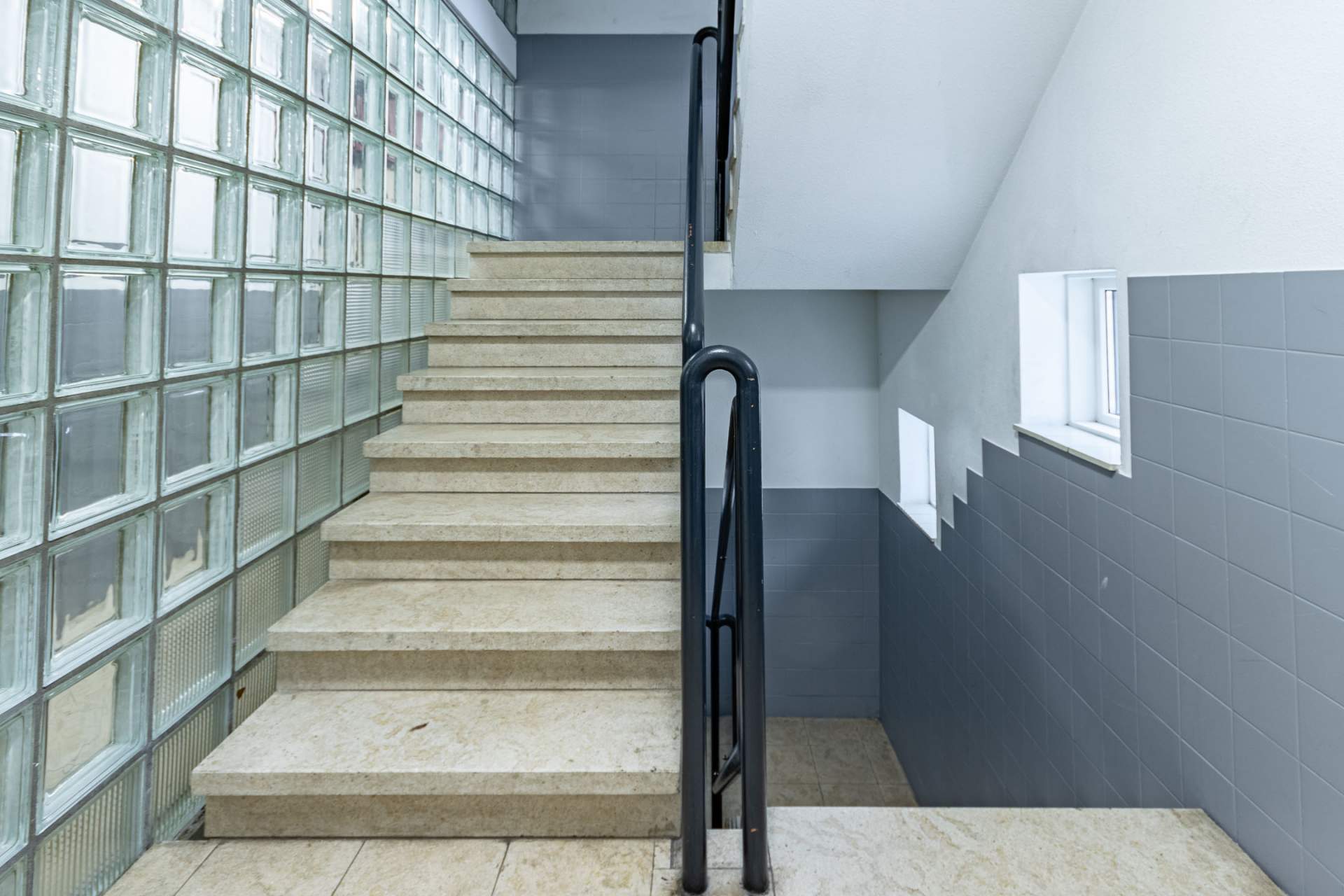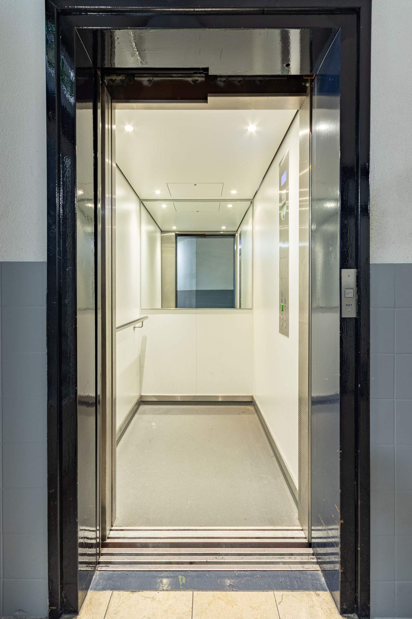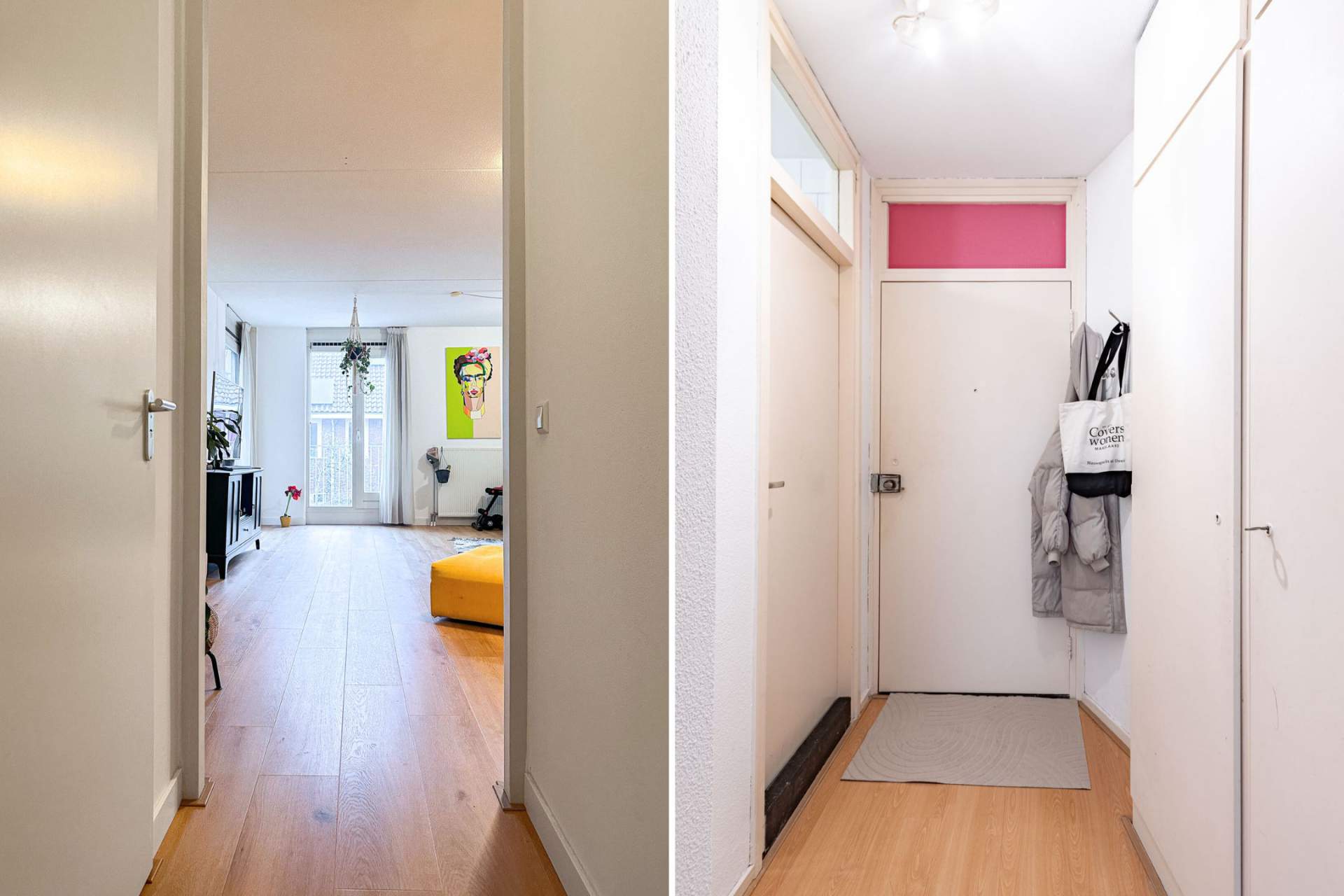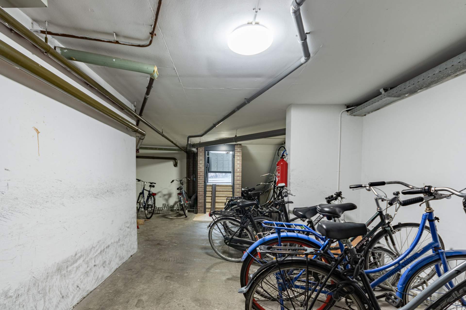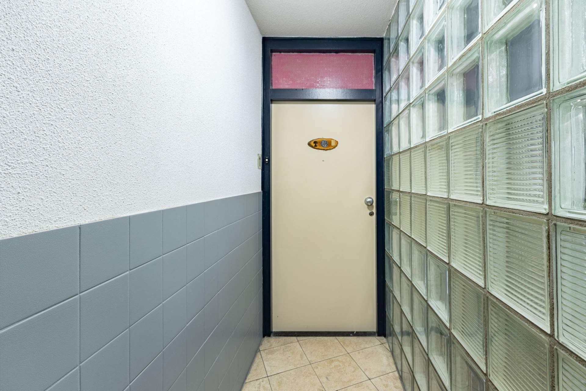 Afgesloten centrale entree met bellentableau en brievenbussen. Vanuit de centrale hal kom je met een aantal treden beneden bij de fietsberging en een fijne bergingskast. Een aantal treden omhoog brengt je naar het niveau van de lift en het afgesloten trappenhuis.