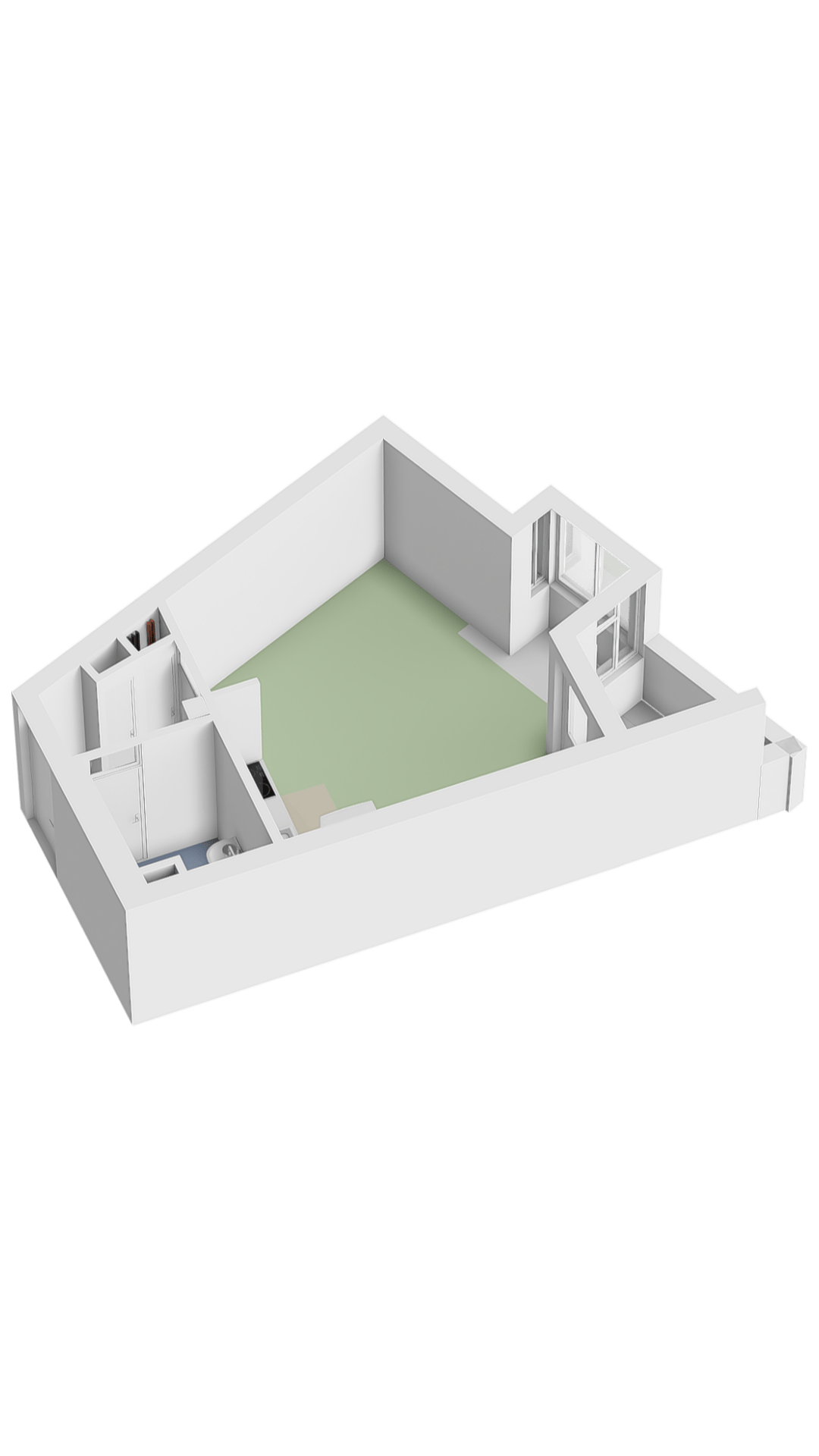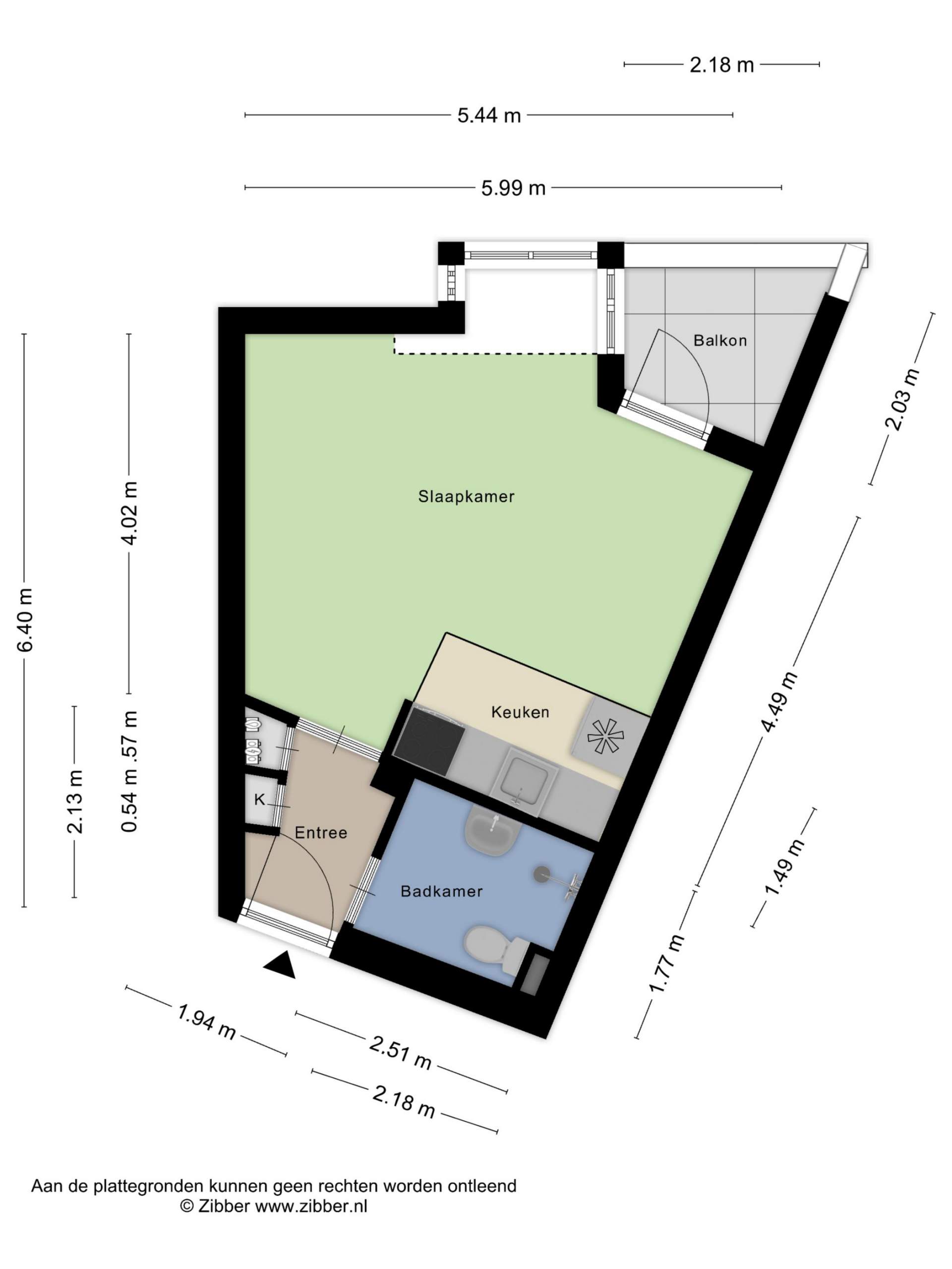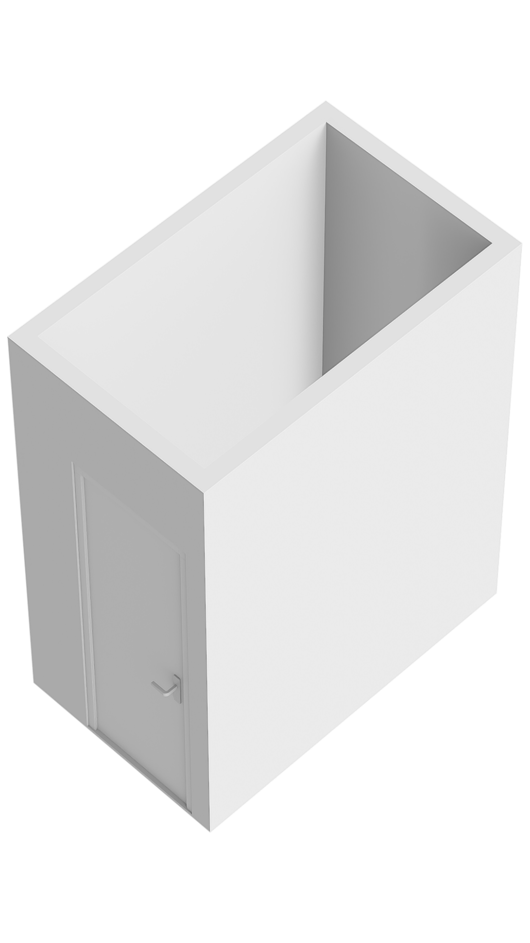 Eigen entree. In de hal intercom, inbouw- en meterkast. Vanuit de hal is er toegang tot de badkamer en het woon-/slaapgedeelte.