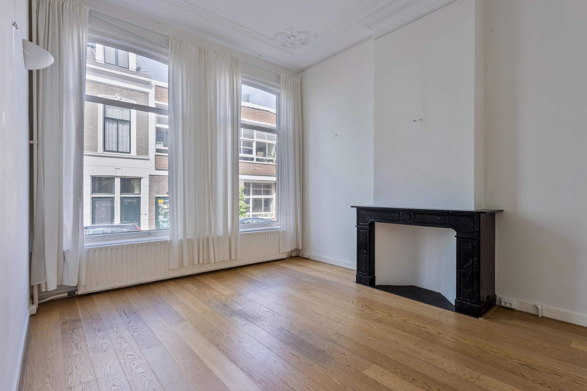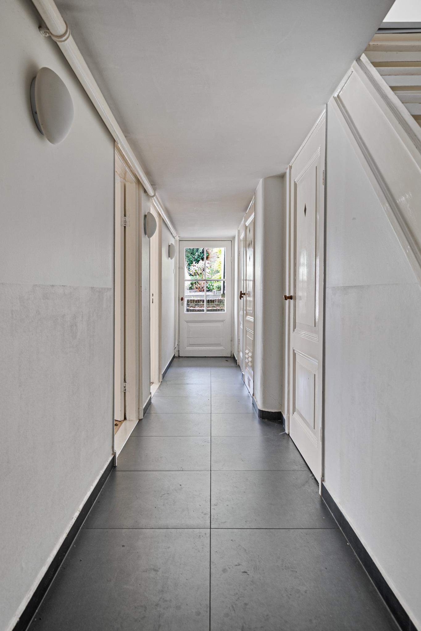 Statige entree met oorspronkelijke details en een marmeren vloer. Ruime, lichte woonkamer en-suite met de originele schuifdeuren hoge plafonds met authentieke ornamenten. Een houten schouw gemaakt door de bekende Utrechtse schrijnwerker William Kuik met Delfts blauwe tegels, voorstellende kinderspelen.