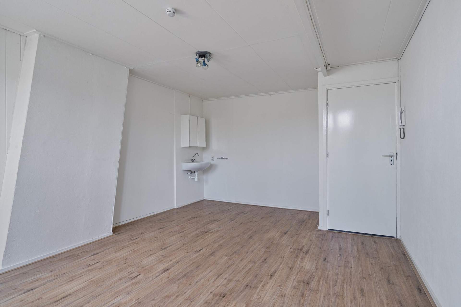 Overloop, twee ruime (slaap)kamers, een kamer met eenvoudig keukenblok, doucheruimte en een afzonderlijk toilet.