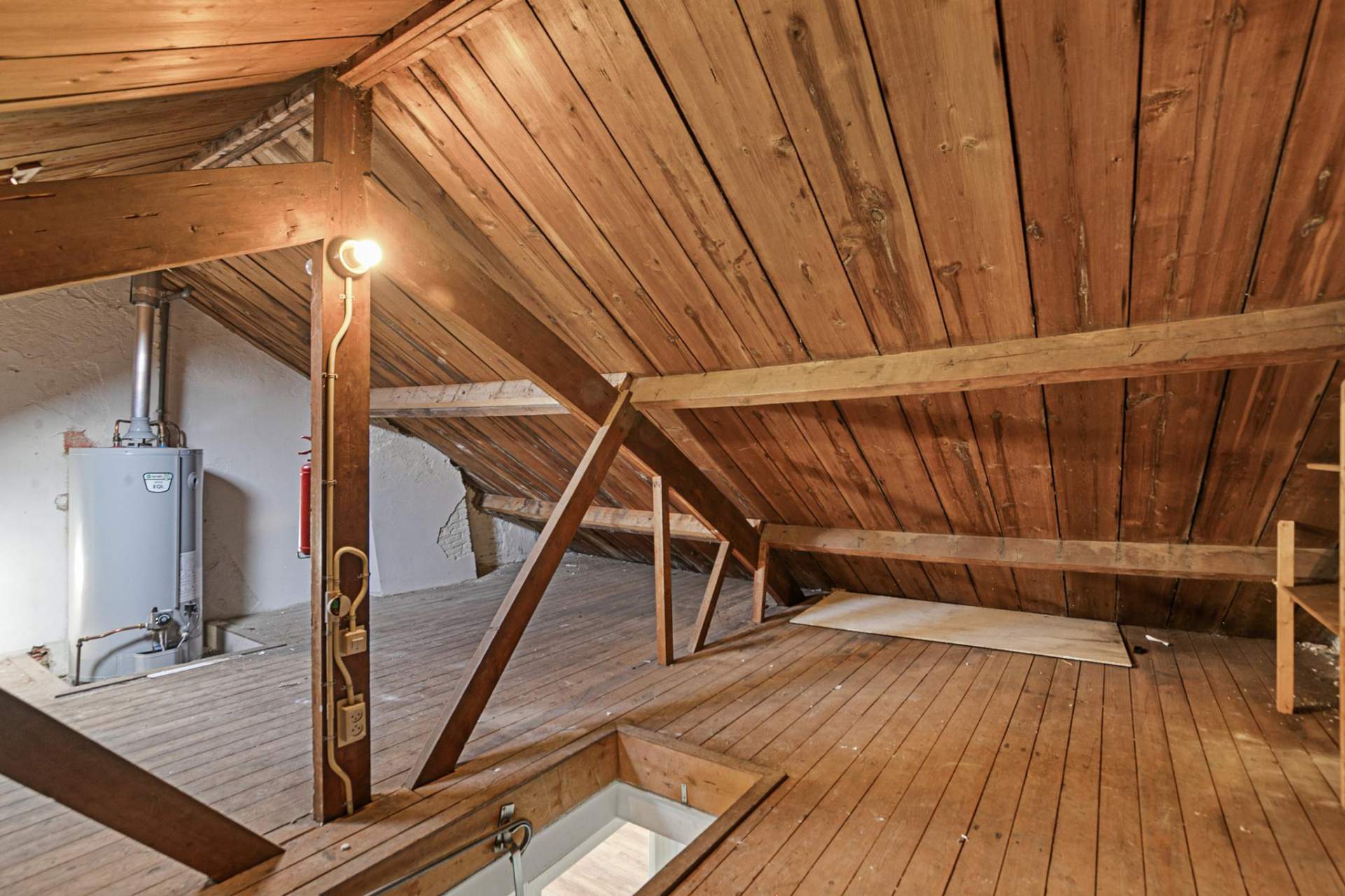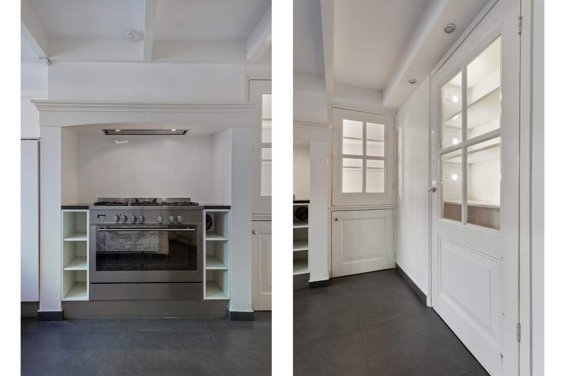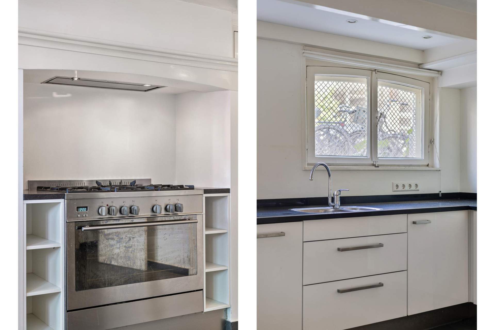 - Authentieke elementen: hoge plafonds, originele schouwen (tuinkamer en keuken), paneeldeuren, schuifdeuren;