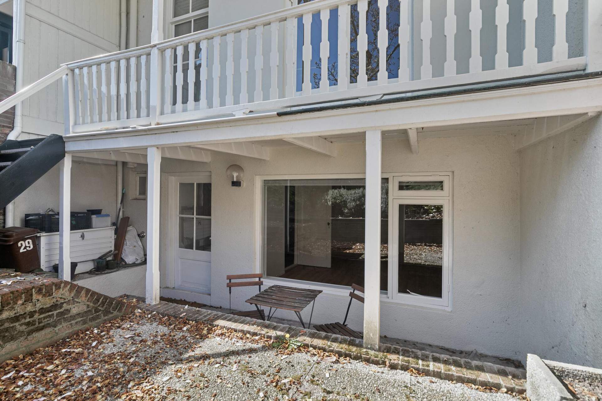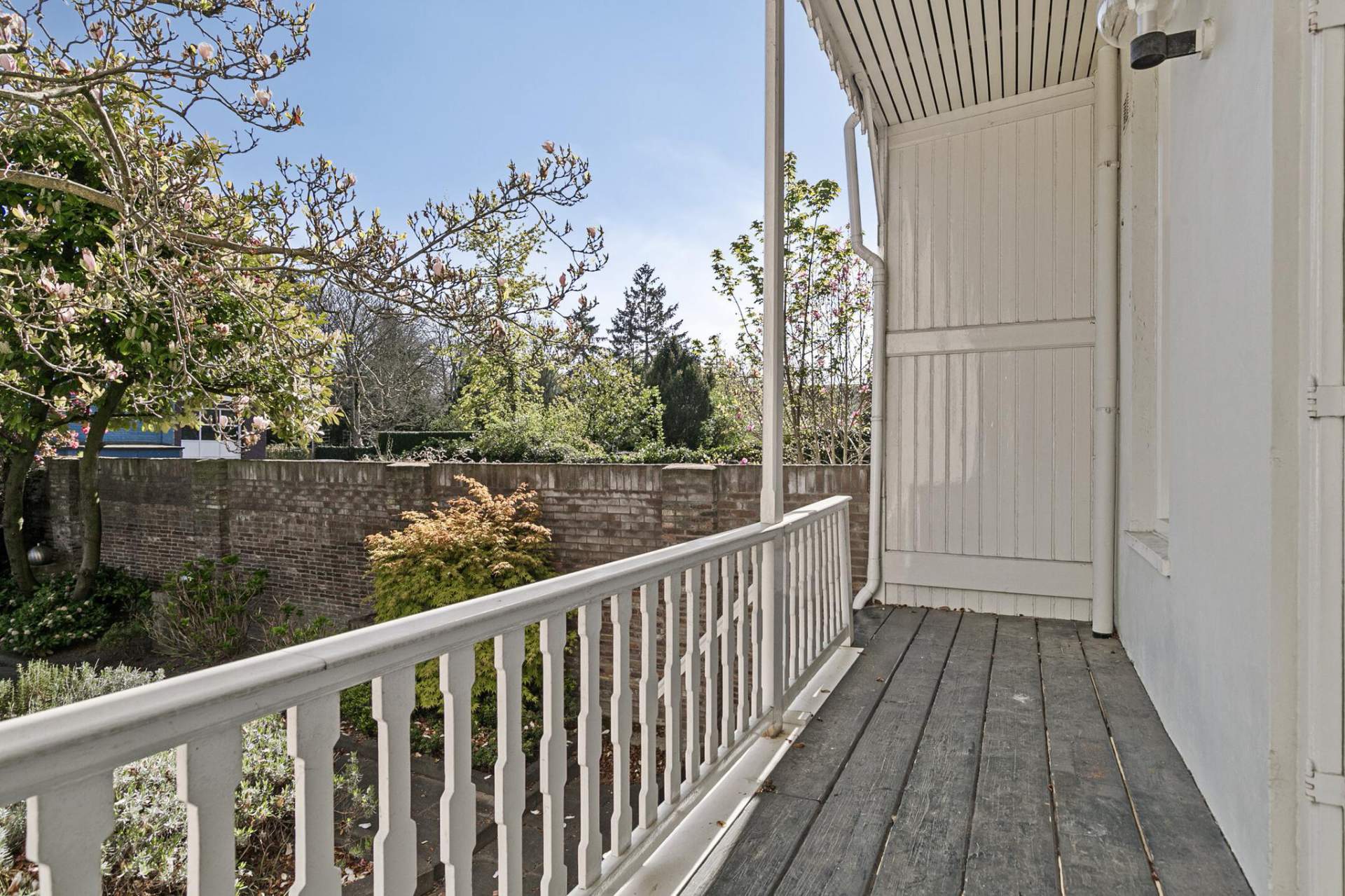 The room on the garden side has an original veranda with stairs to and a view of the garden.
