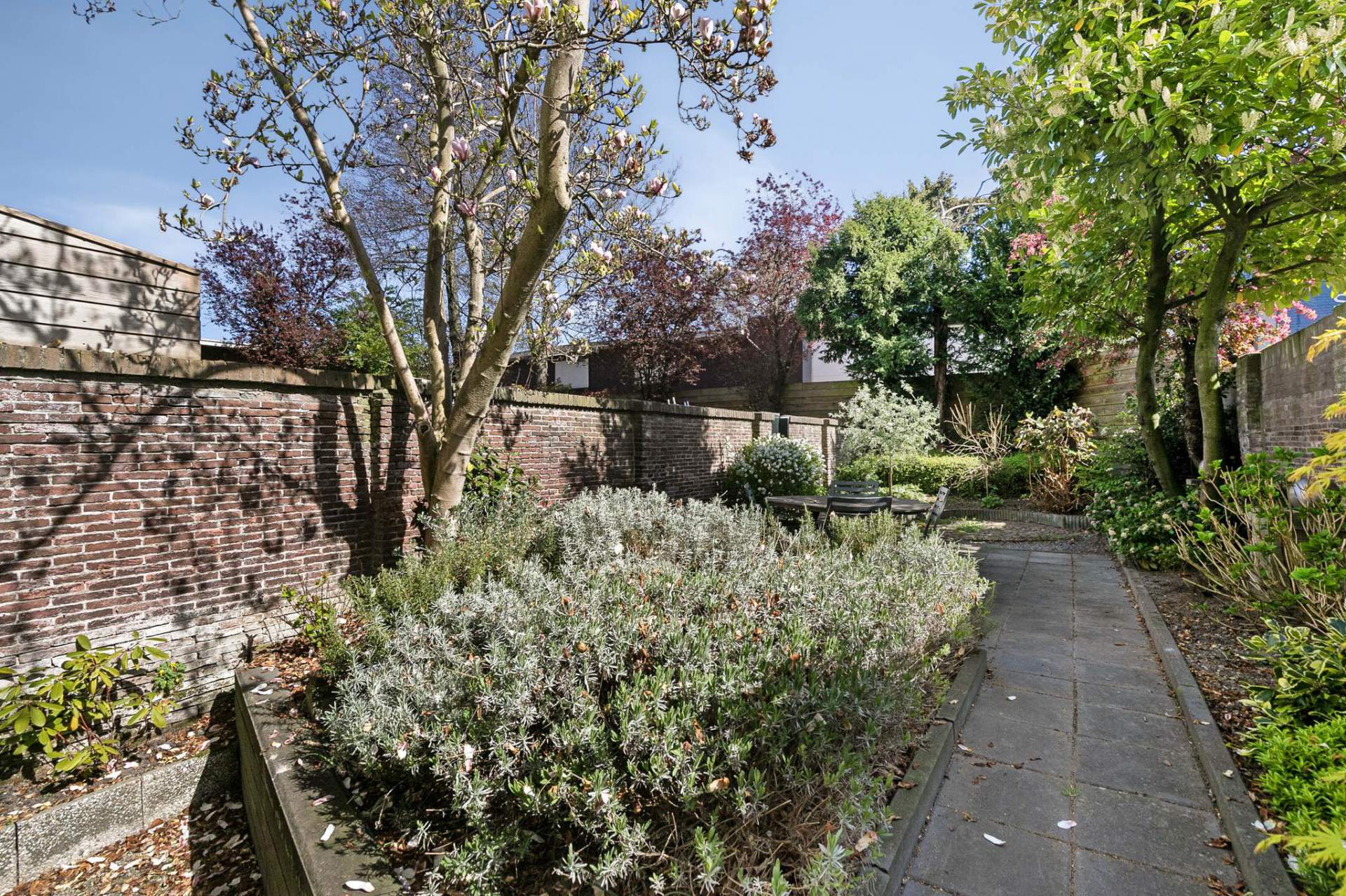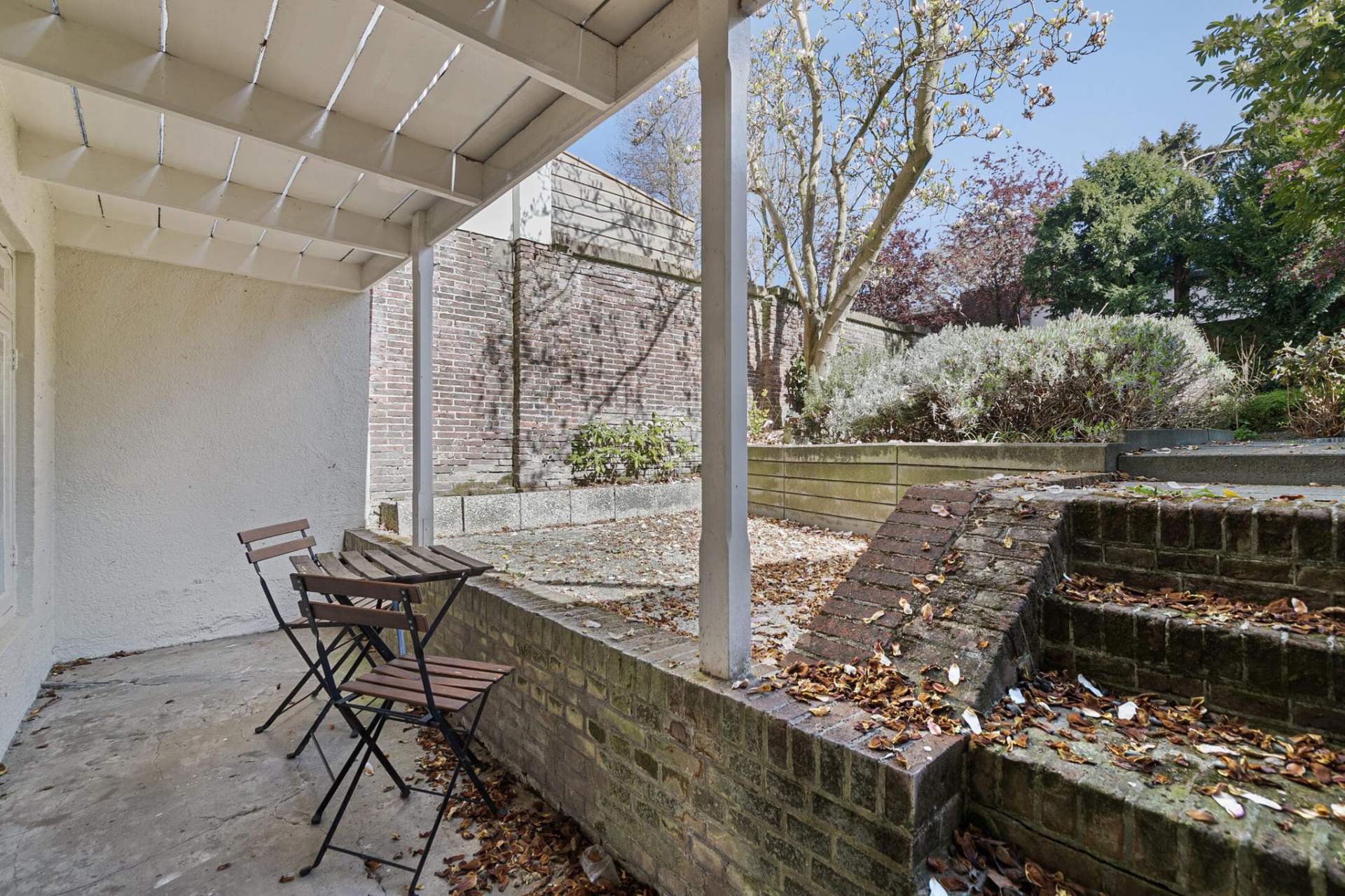 De grotendeels ommuurde tuin is een zeldzaam pareltje in de stad met mooie beplanting en tuinaanleg. Met volop privacy en volop zon is het een heerlijke plek om te ontspannen en voor kinderen om te spelen.