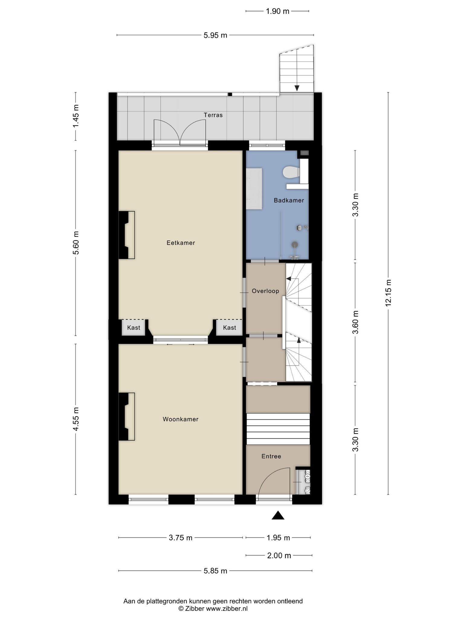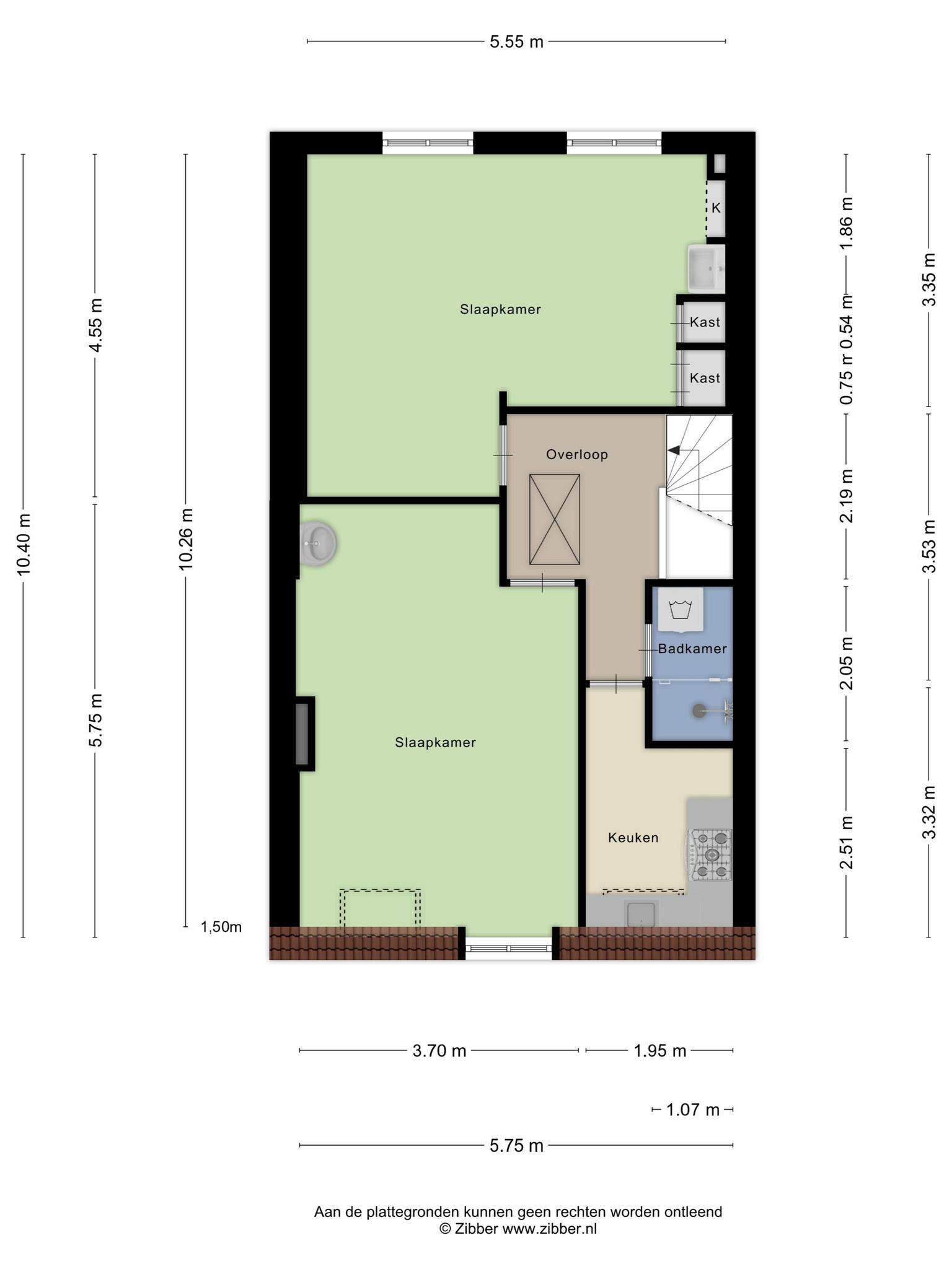 Two (bed)rooms, modern kitchen, shower with space for washing machine and dryer. Also a loft ladder to the spacious attic where the gas boiler is located. The second floor is very suitable for an au pair, guests or for someone who works from home.