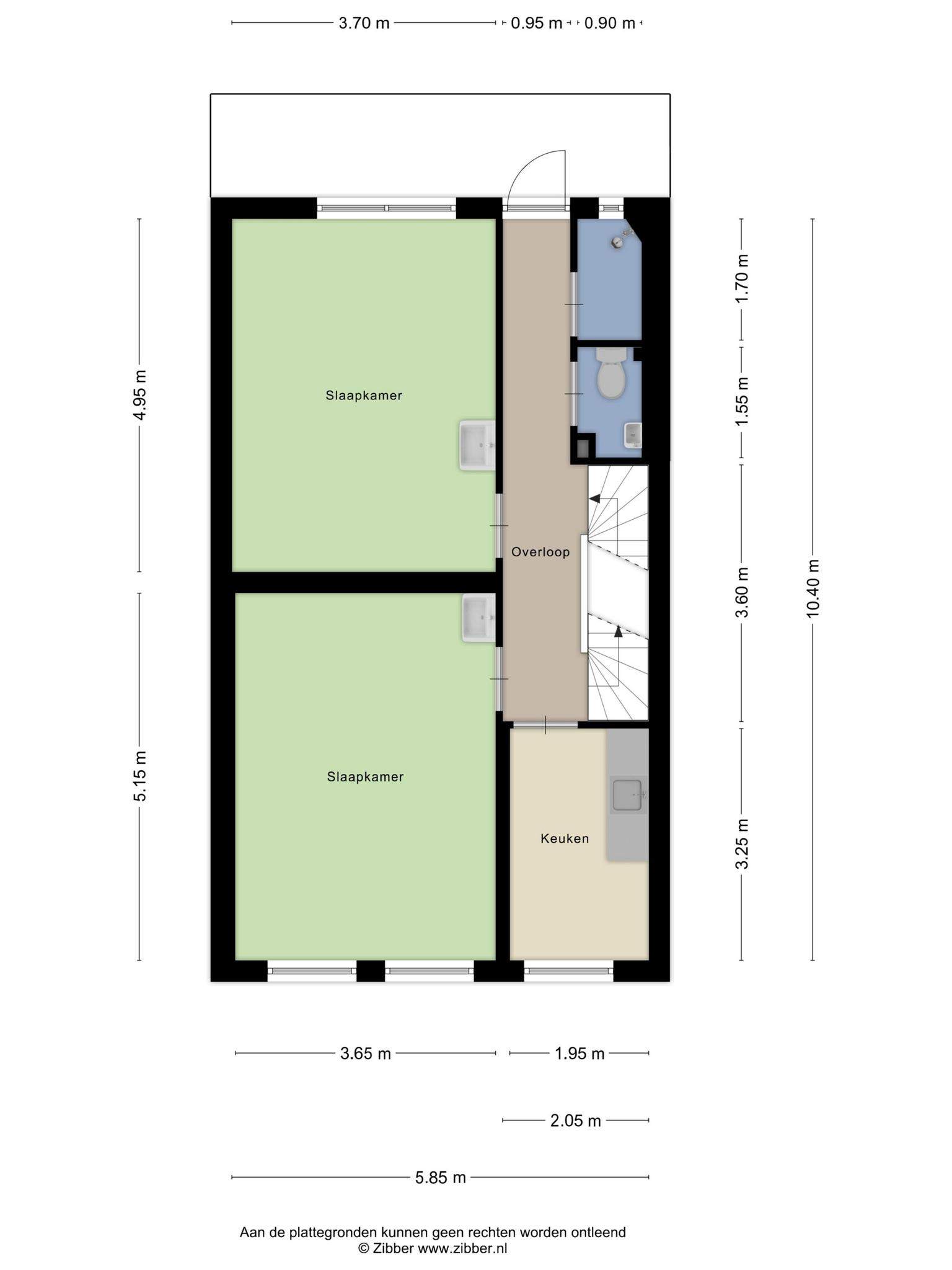 Twee (slaap)kamers, moderne keuken, douche met ruimte voor was-en droogmachine. Tevens een vlizotrap naar de ruime zolder waar de gasboiler staat. De tweede verdieping is zeer geschikt voor bijvoorbeeld een au pair, logees of voor iemand die thuis werkt.