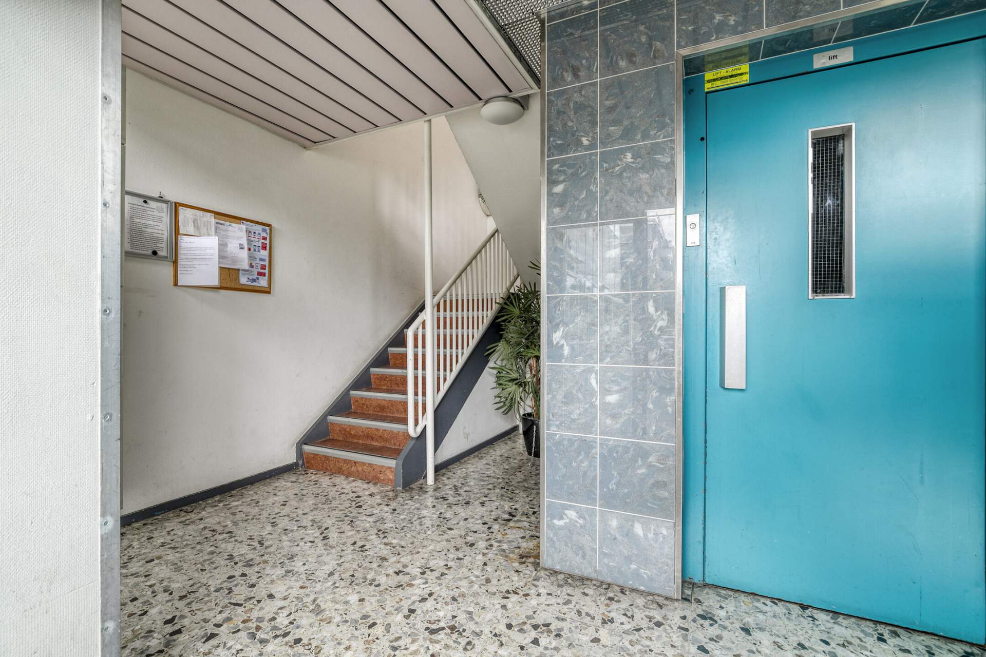 Gemeenschappelijke afgesloten entree met intercom, lift, toegang tot ruime berging en het trappenhuis.